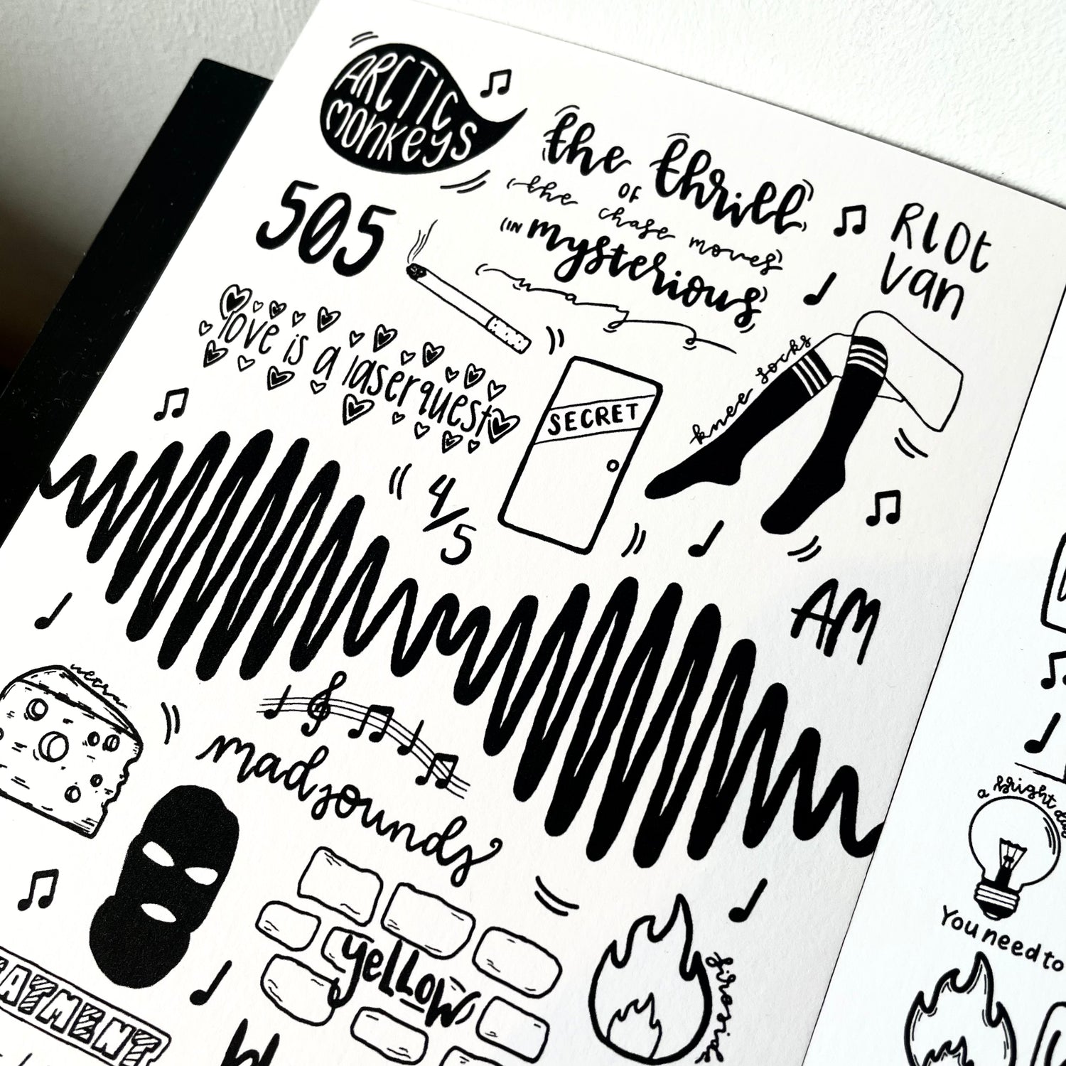 Estos son algunos de los diseños con los que empezó todo, como Arctic Monkeys, el primer estampado que diseñé para mí.