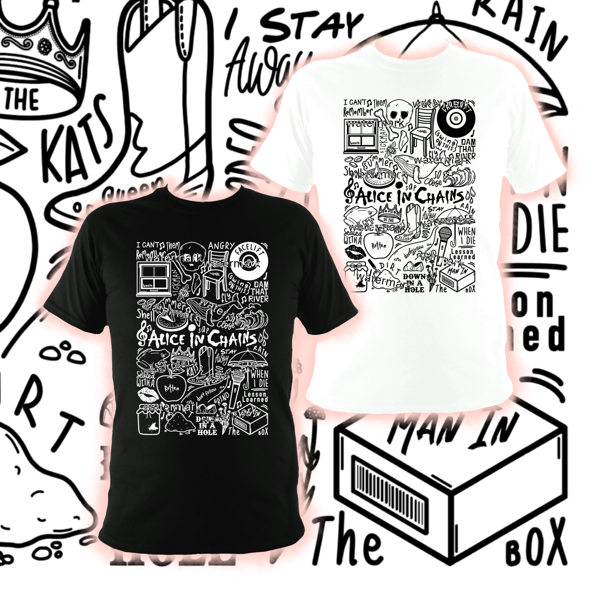 🎶Professionally printed cotton unisex Alice In Chains top in black or white.