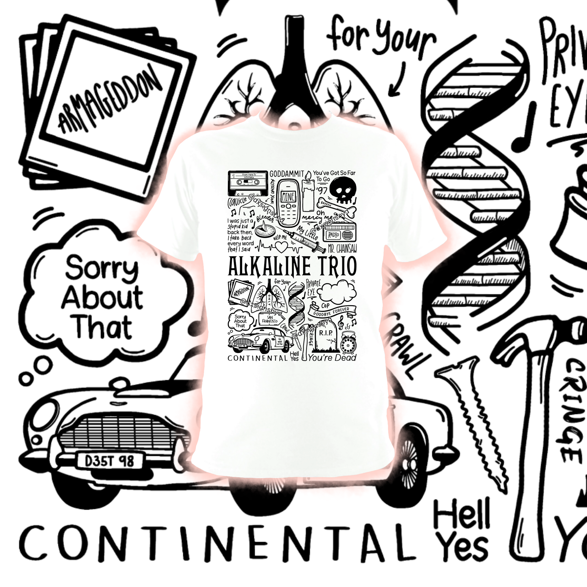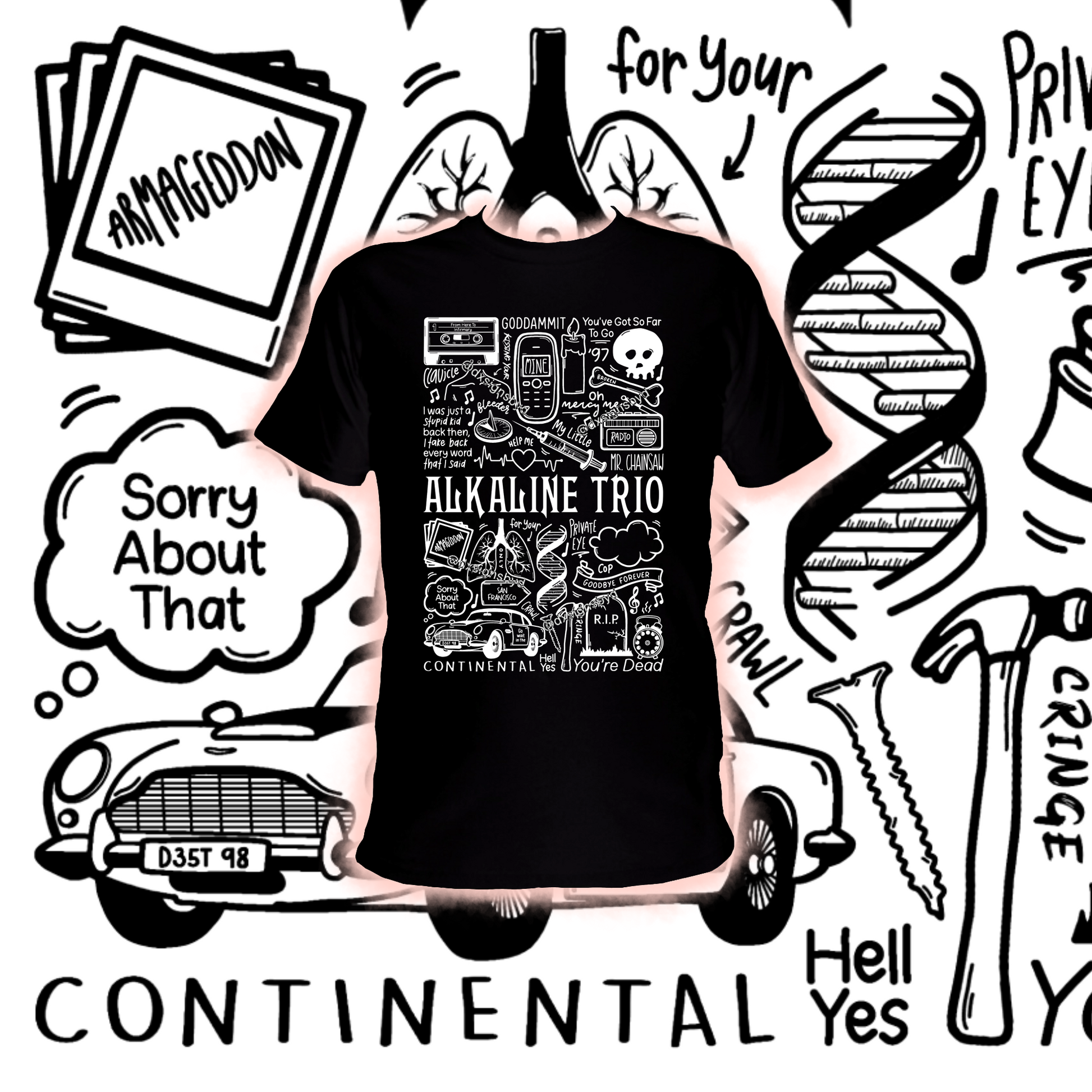 🎶 Camiseta Alkaline Trio unisex de algodón impresa profesionalmente en blanco o negro.