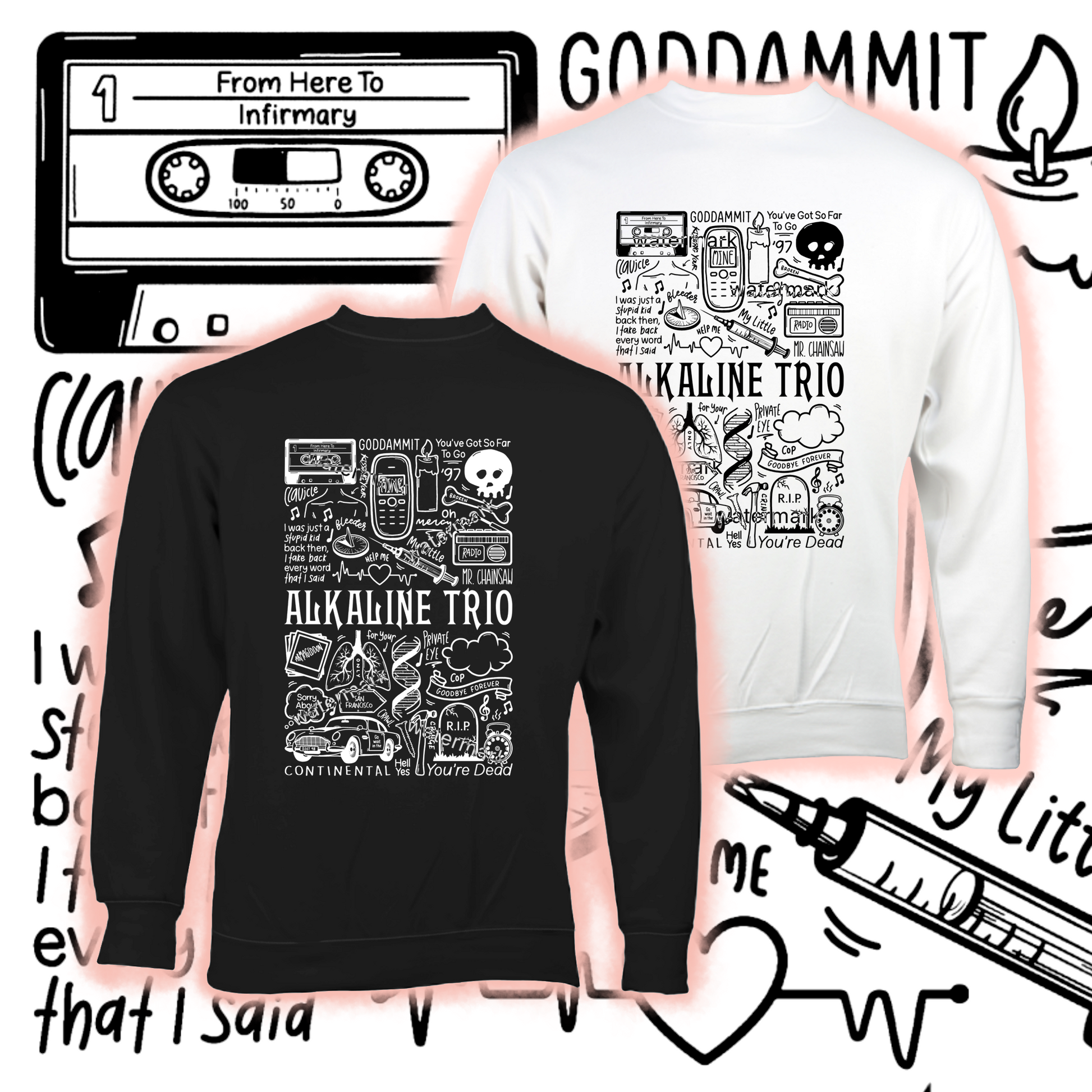 🎶 Jersey Alkaline Trio unisex de algodón en blanco o negro.