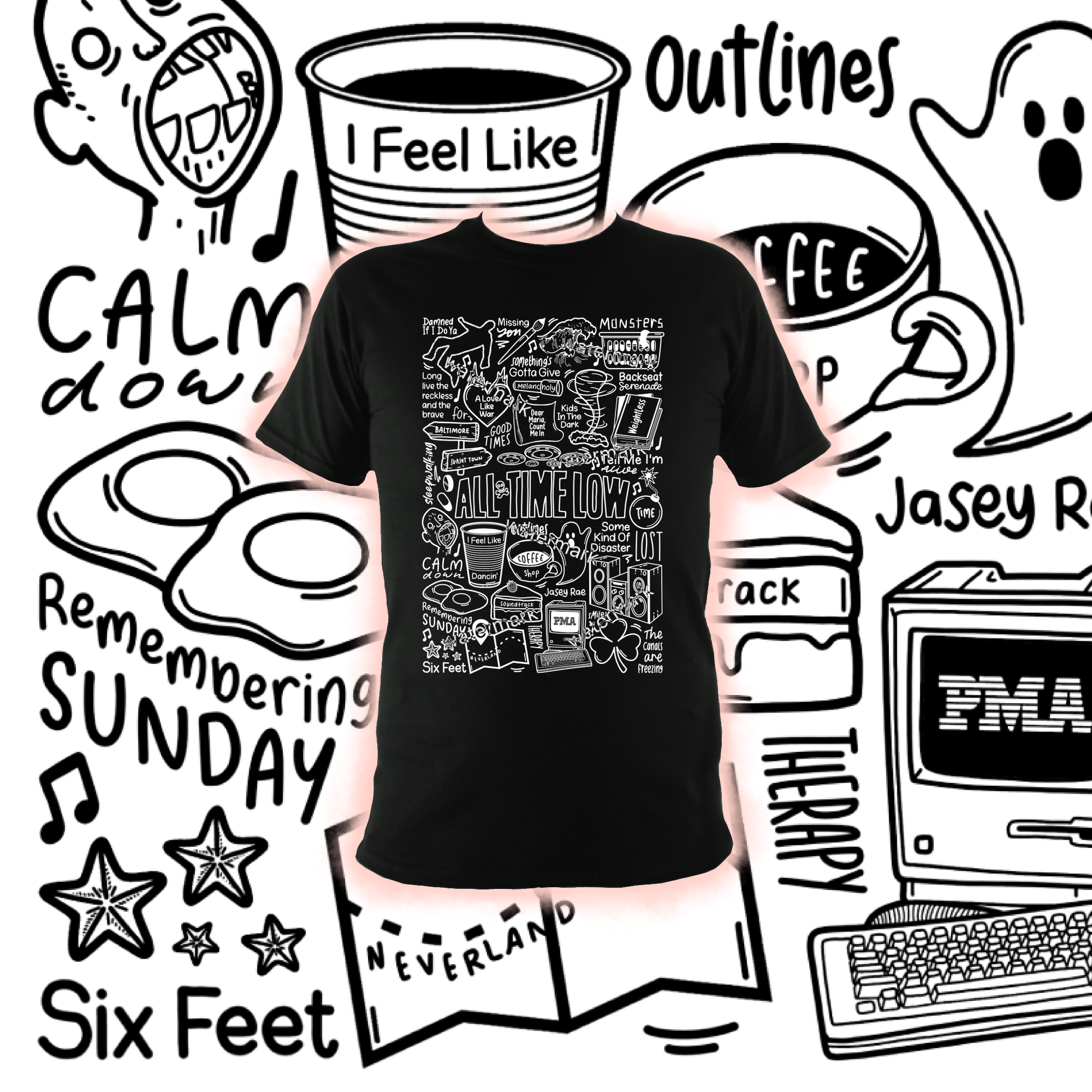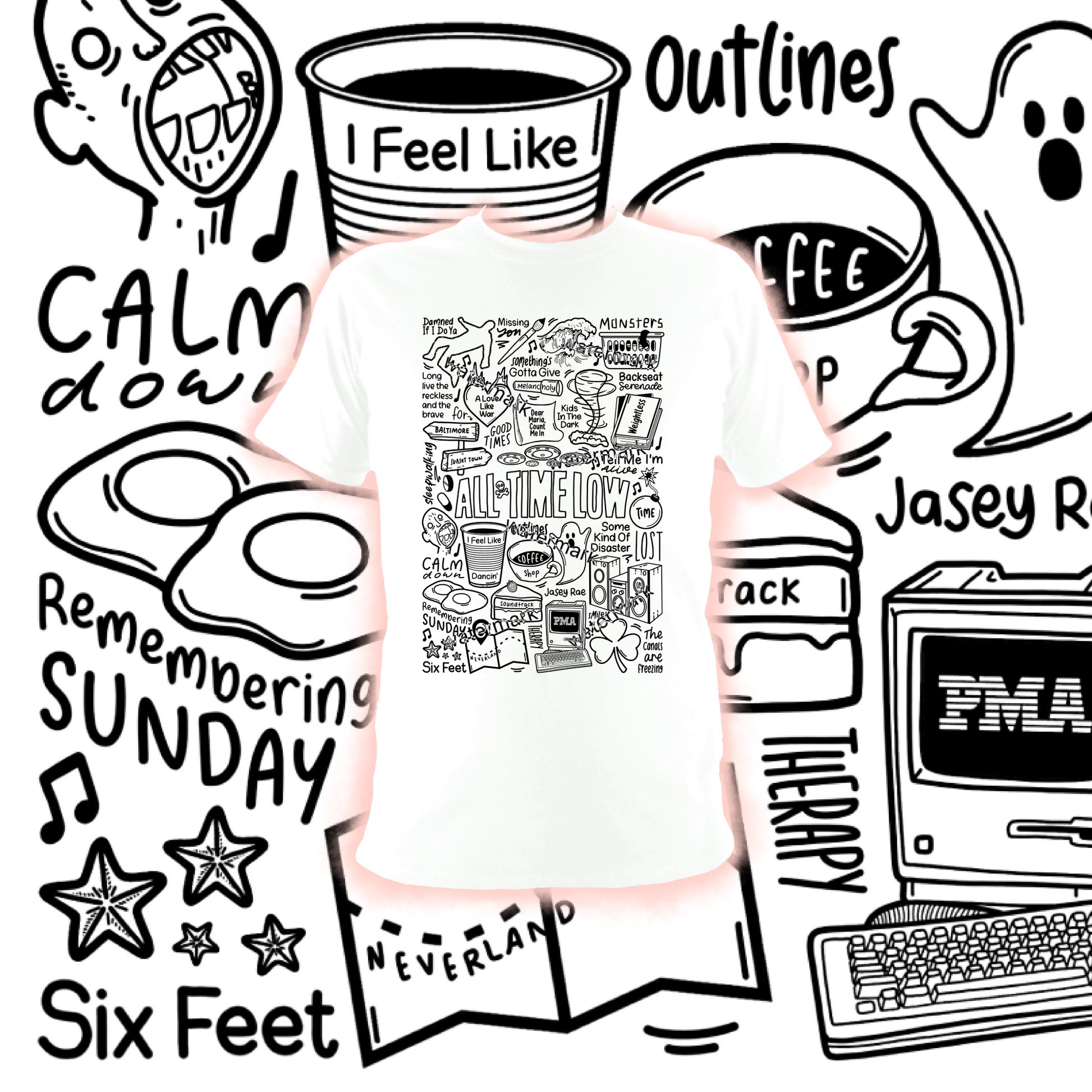 🎶 Camiseta unisex All Time Low de algodón impresa profesionalmente en blanco o negro.