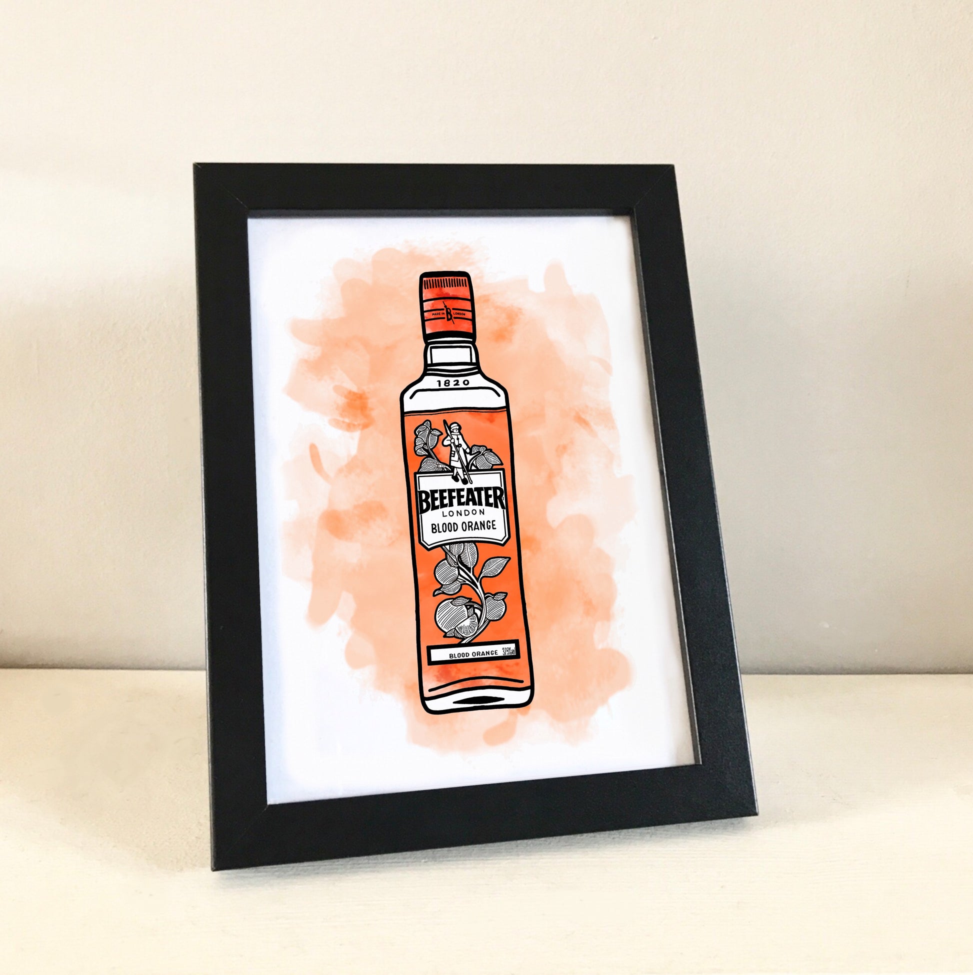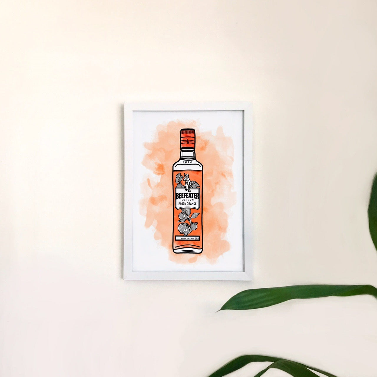 🧡Ilustración de ginebra de naranja sanguina Beefeater y póster en acuarela.