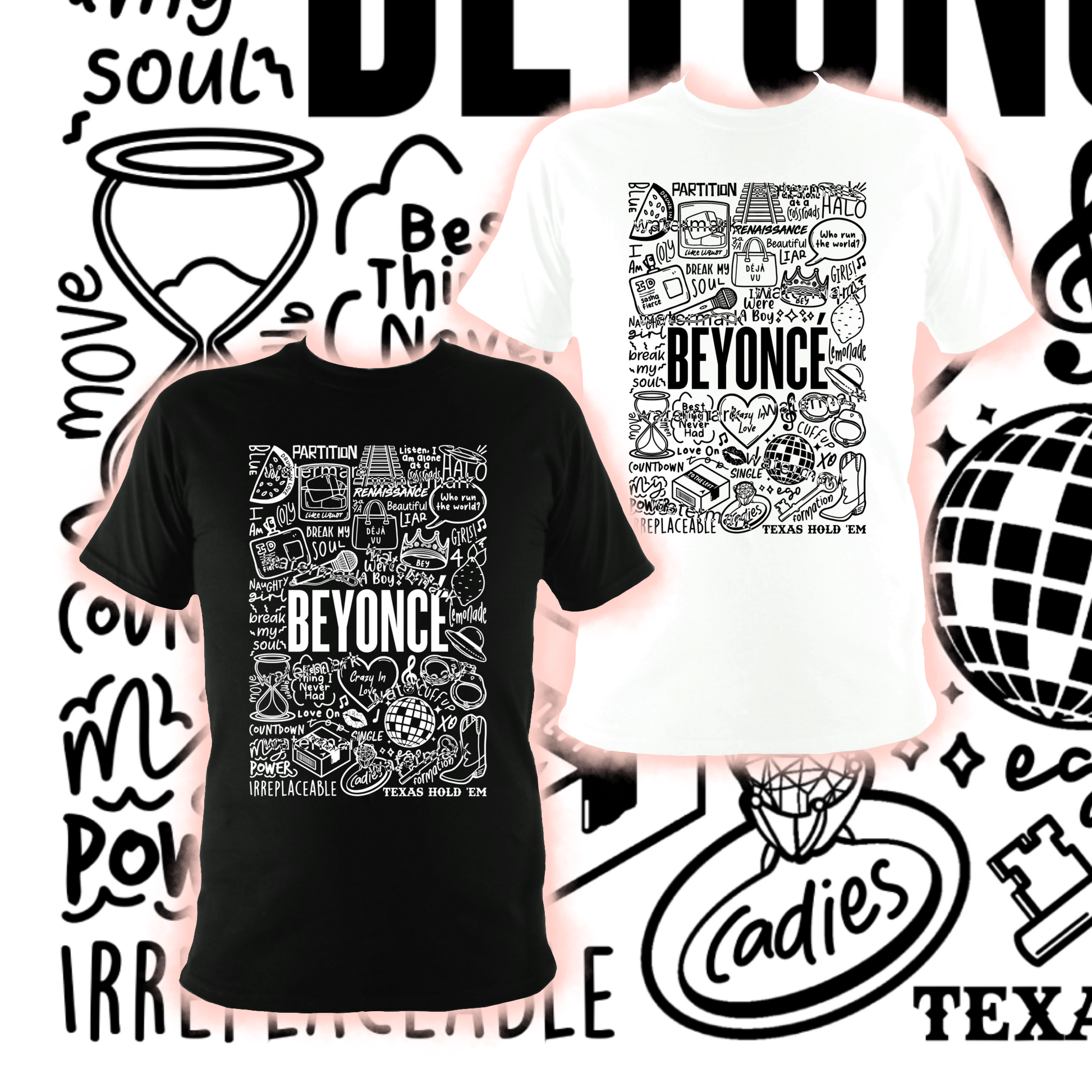 🎶Professionally printed cotton unisex Beyoncé top in black or white.