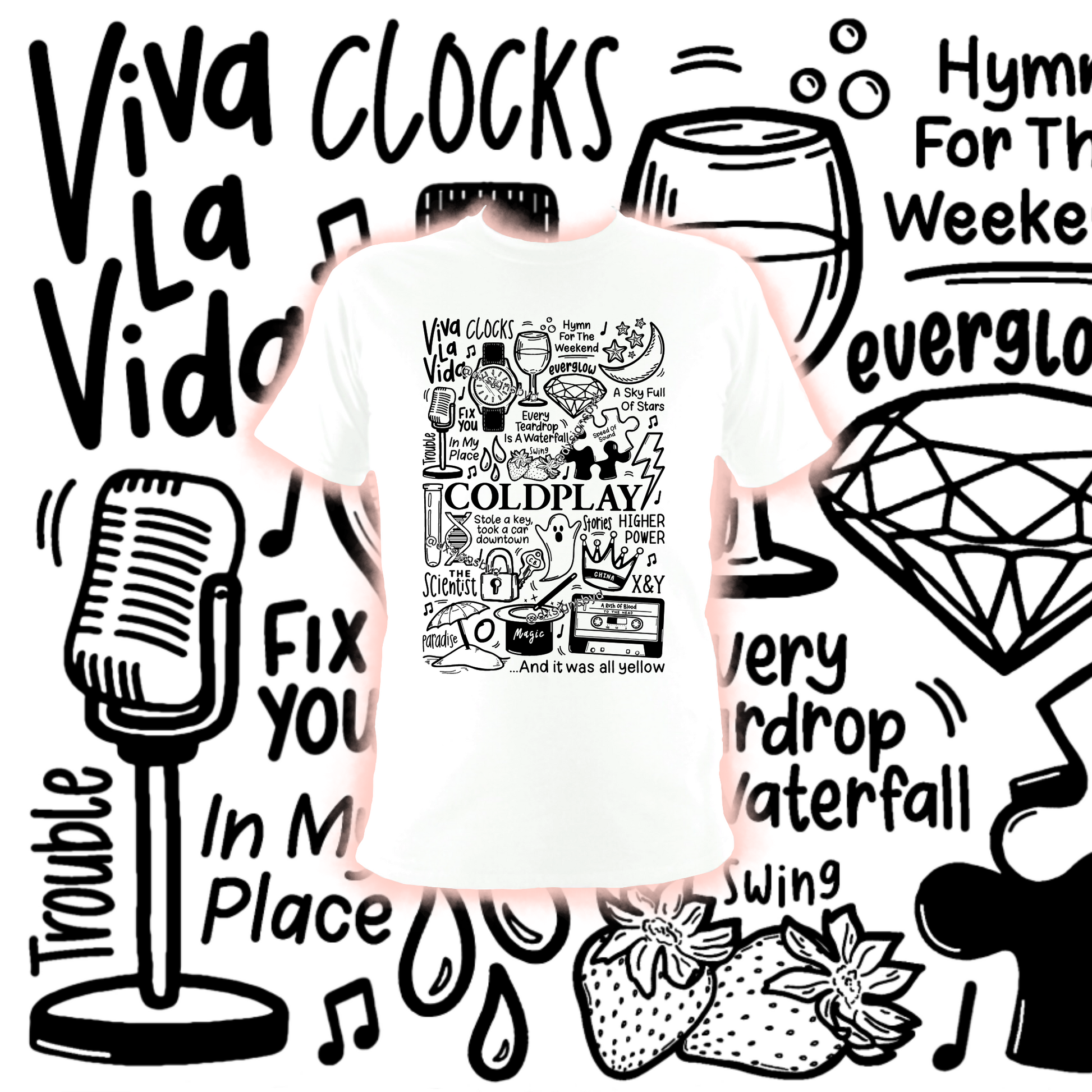 🎶 Jersey Coldplay unisex de algodón en blanco o negro.