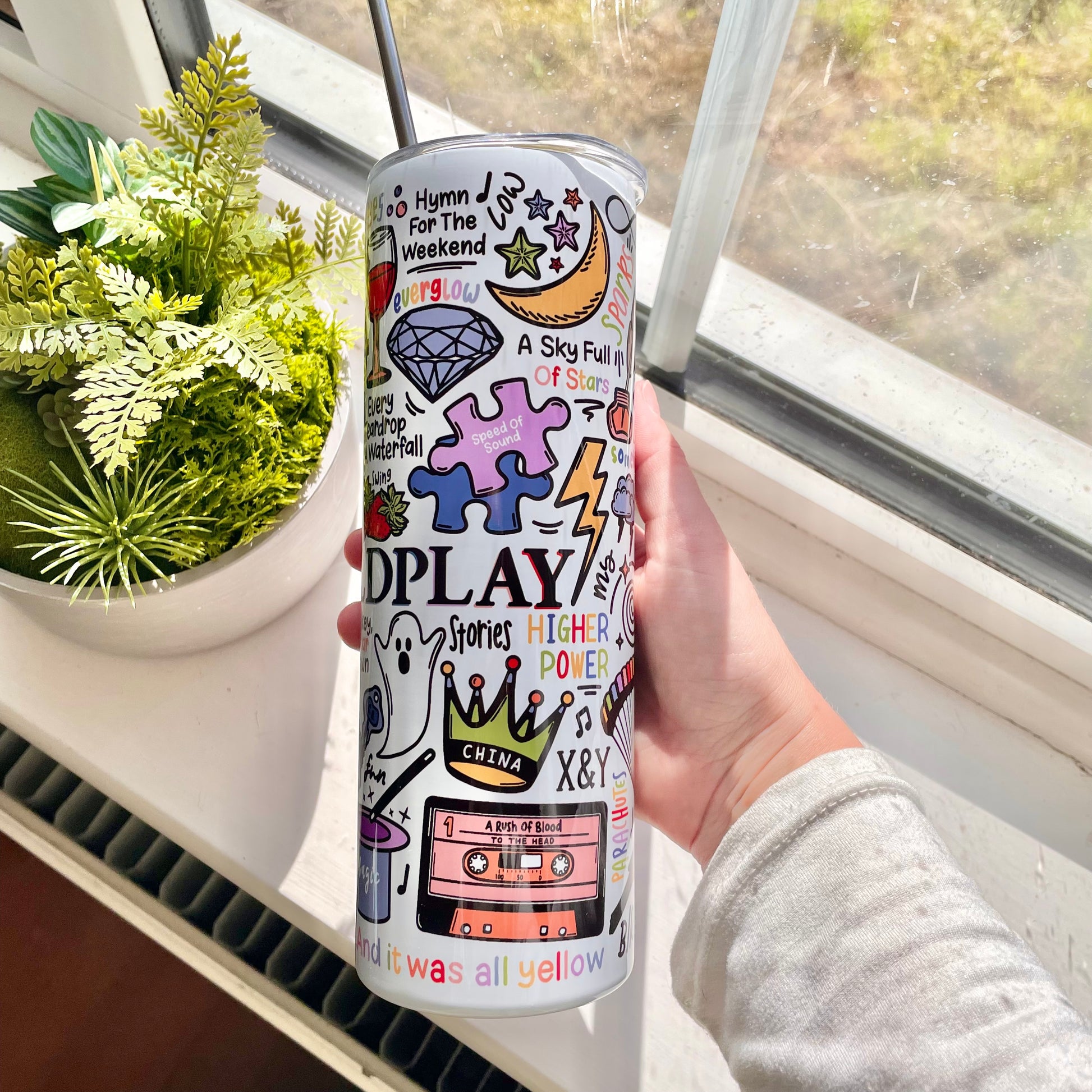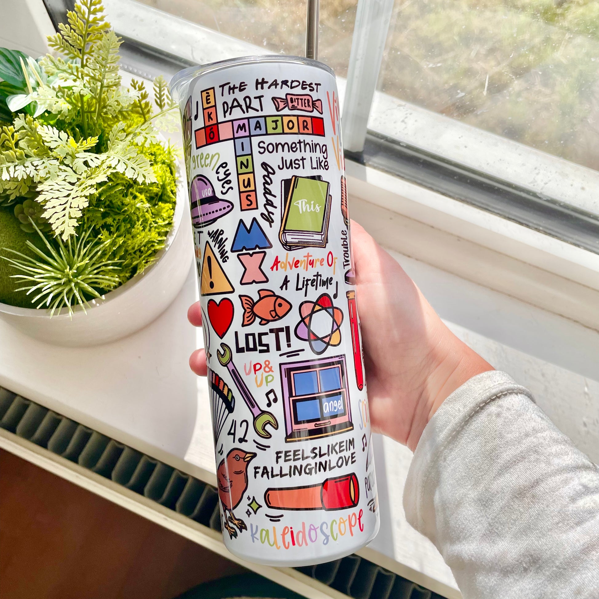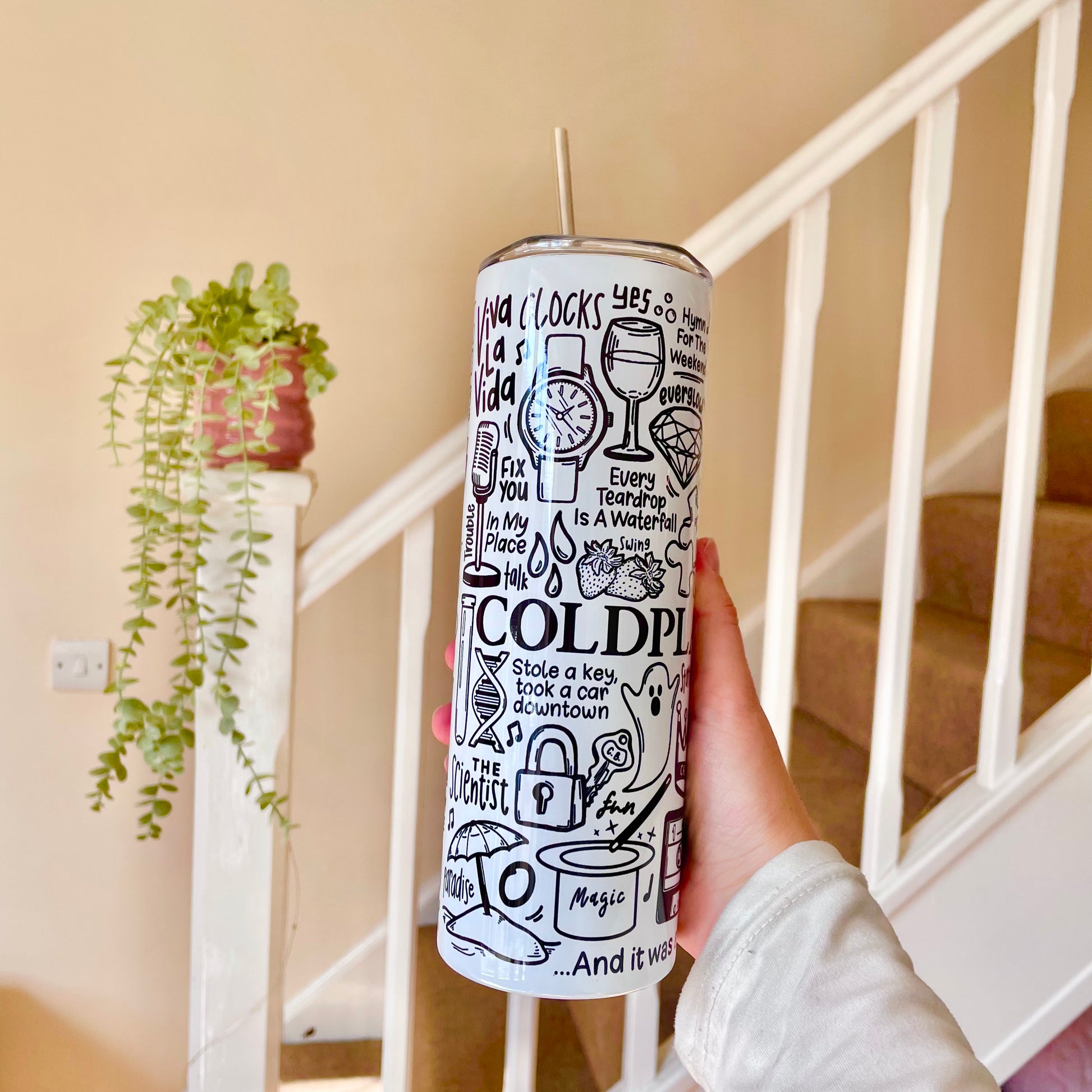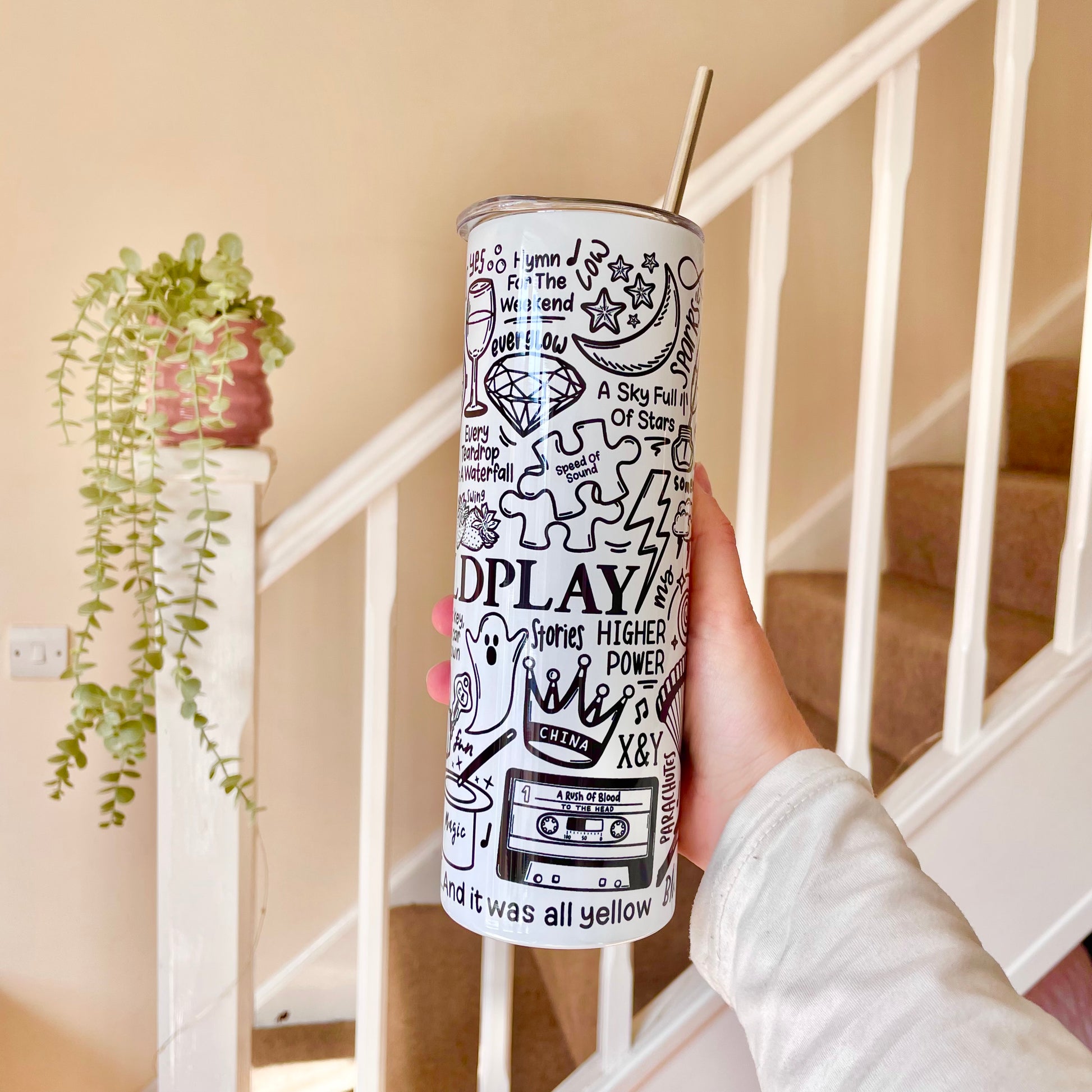 🥤Get lyrical with your beverages with our travel drinks cup! This versatile Coldplay cup keeps your drinks hot OR cold and your spirits high with fun lyrics and drawings printed all around the cup. Stay hydrated (and entertained) on the go with our tumblers🥰