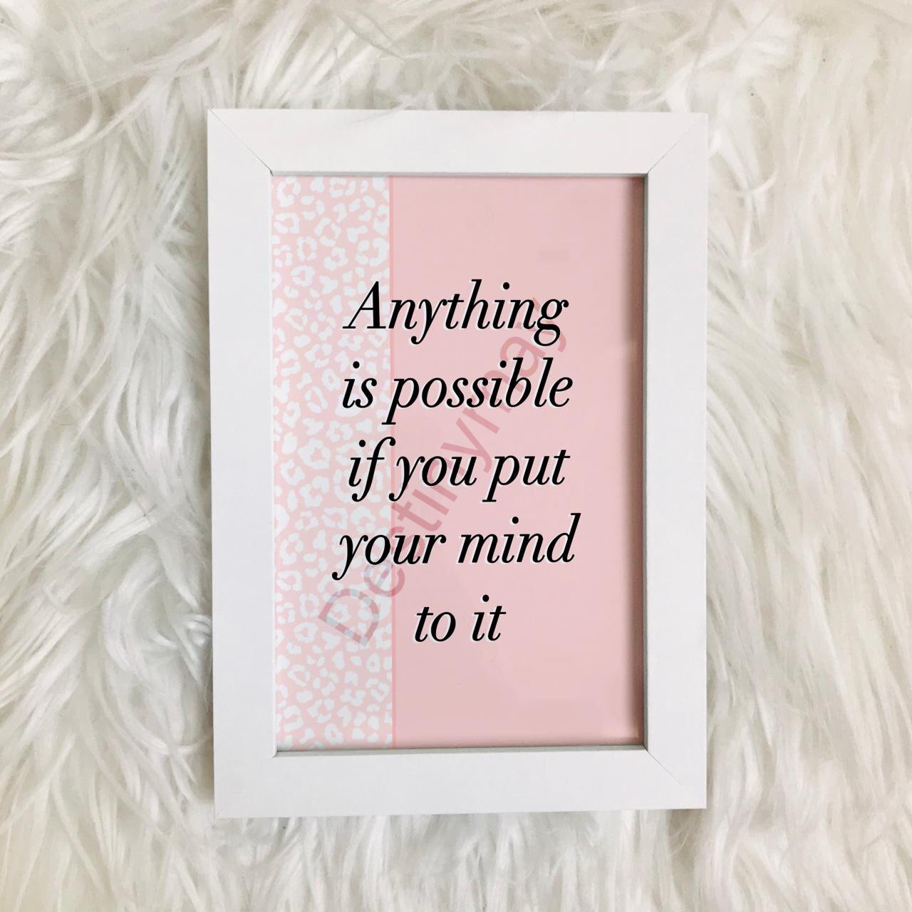 🌸Póster motivacional y positivo con la frase 'Todo es posible si te lo propones' en letra cursiva sobre un fondo con estampado de leopardo rosa y blanco.