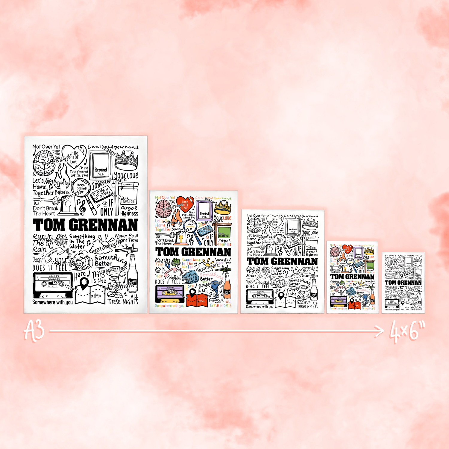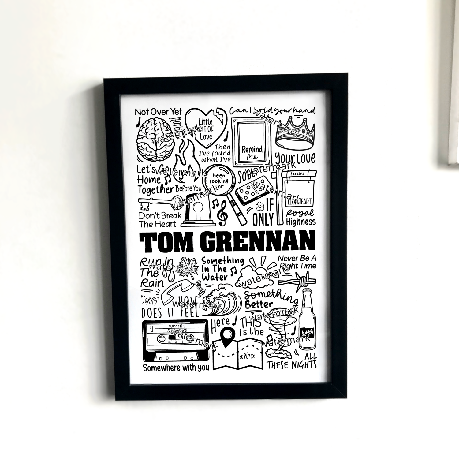 🎶 Póster de Tom Grennan con imágenes y letras de canciones de sus álbumes.