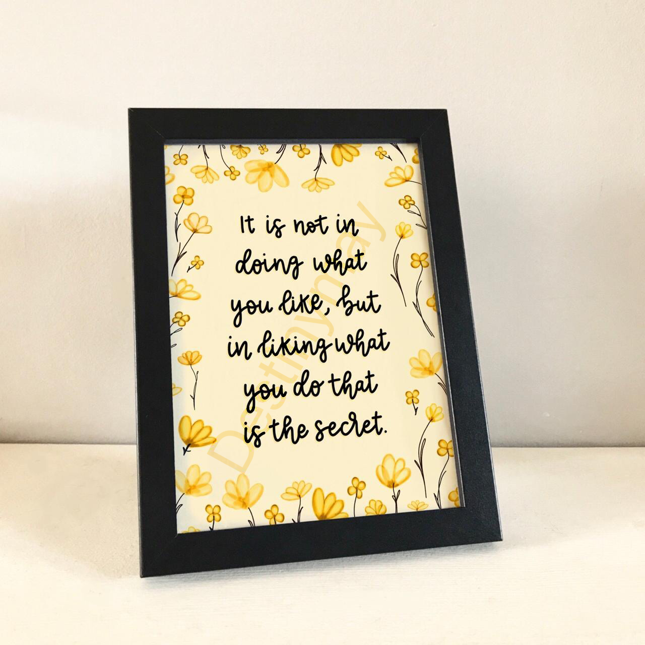 💛Póster motivacional y positivo que incluye la cita sobre un fondo amarillo con flores amarillas ilustradas.