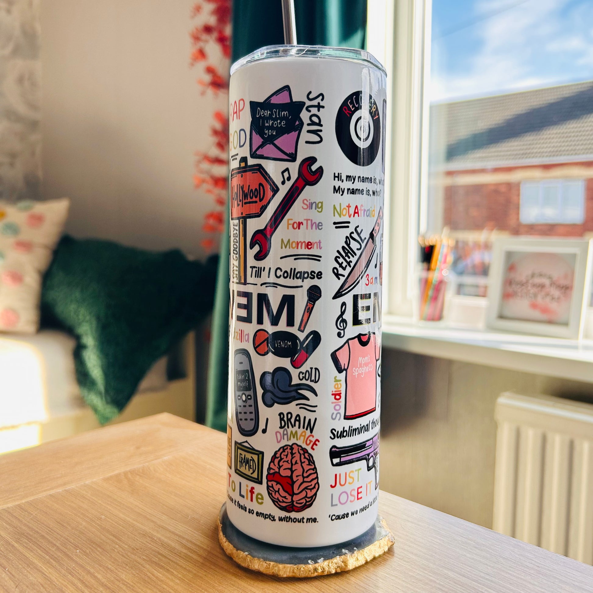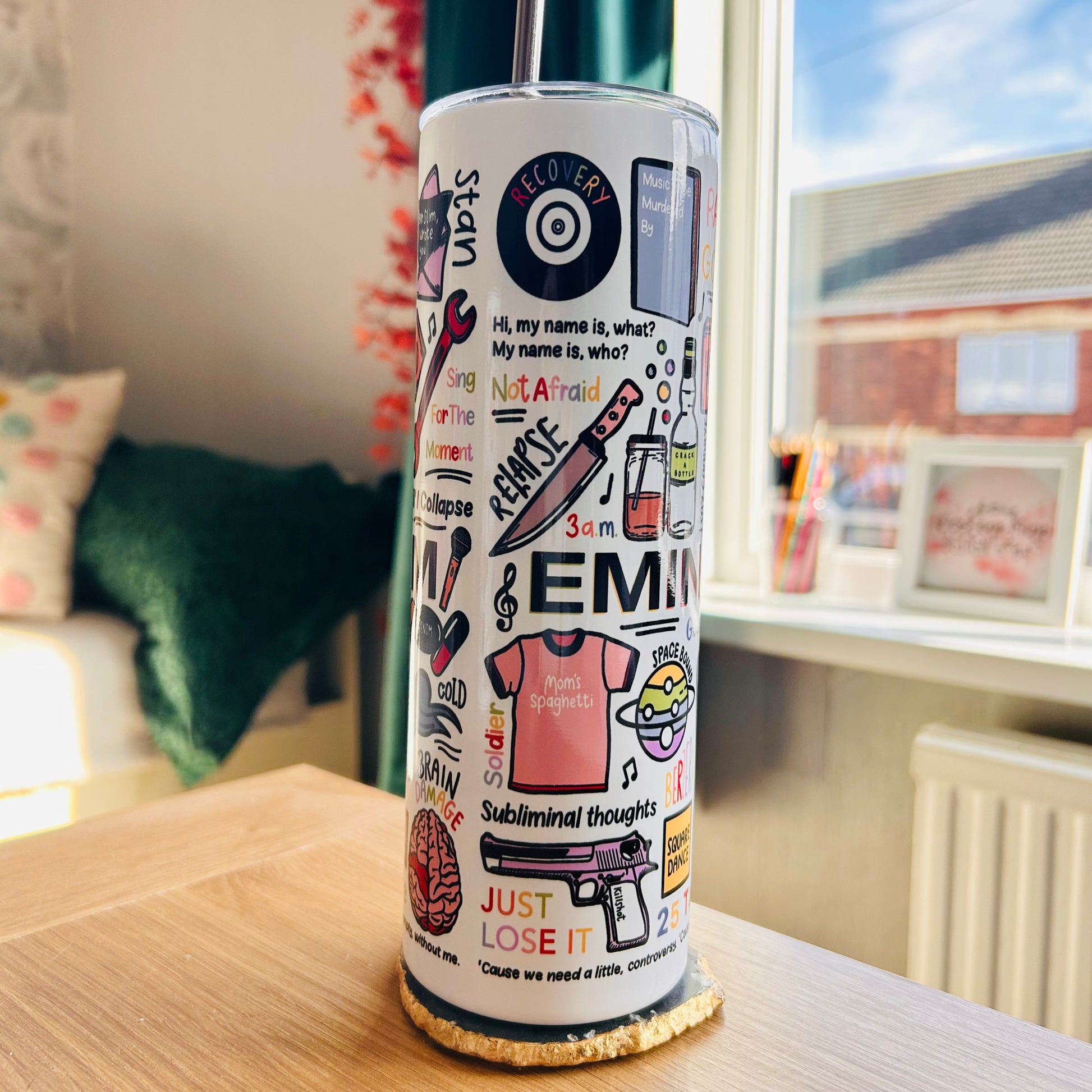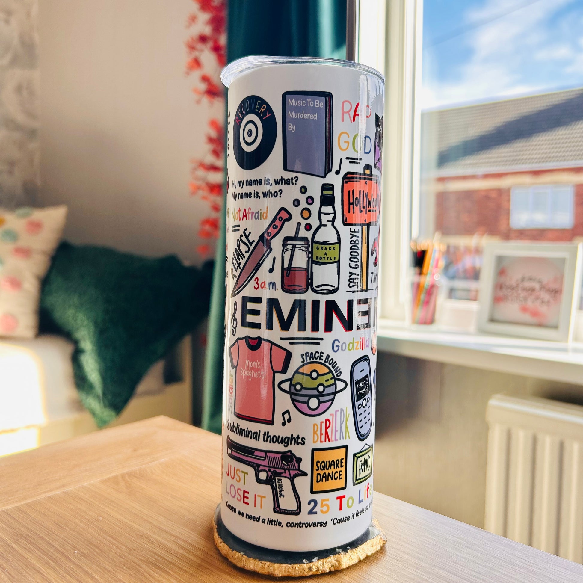 🥤Get lyrical with your beverages with our Eminem travel drinks cup! This versatile cup keeps your drinks hot OR cold and your spirits high with fun lyrics and drawings printed all around the cup. Stay hydrated (and entertained) on the go with our tumblers🥰