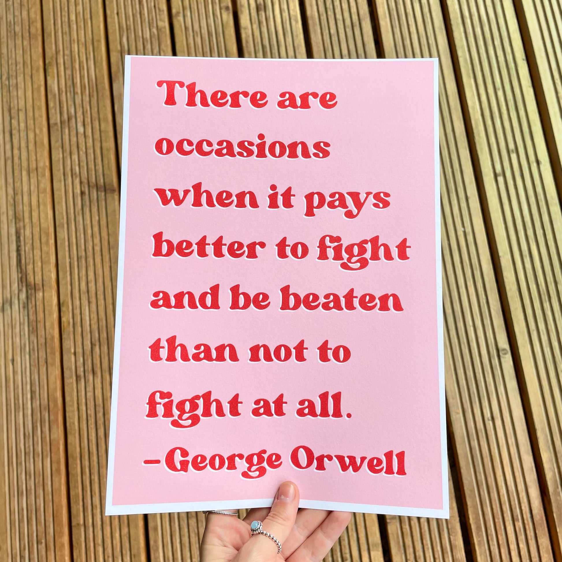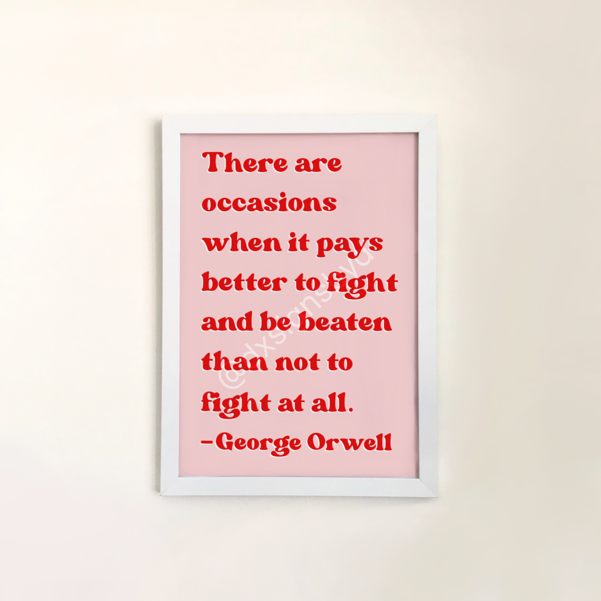 🩷Póster motivacional y positivo de George Orwell con la cita en fuente roja sobre fondo rosa.