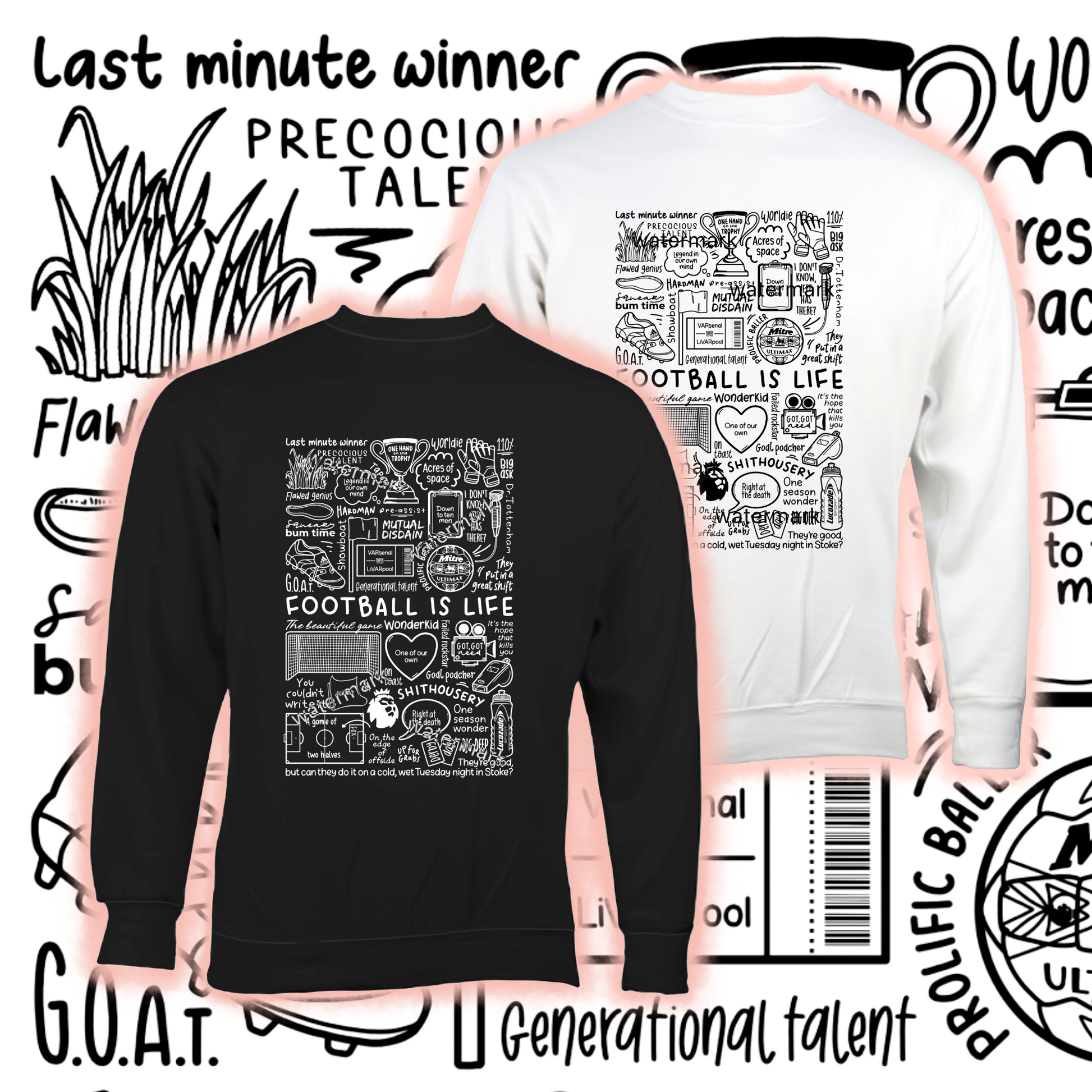 ⚽️S jersey unisex Football Is Life de algodón en blanco o negro.