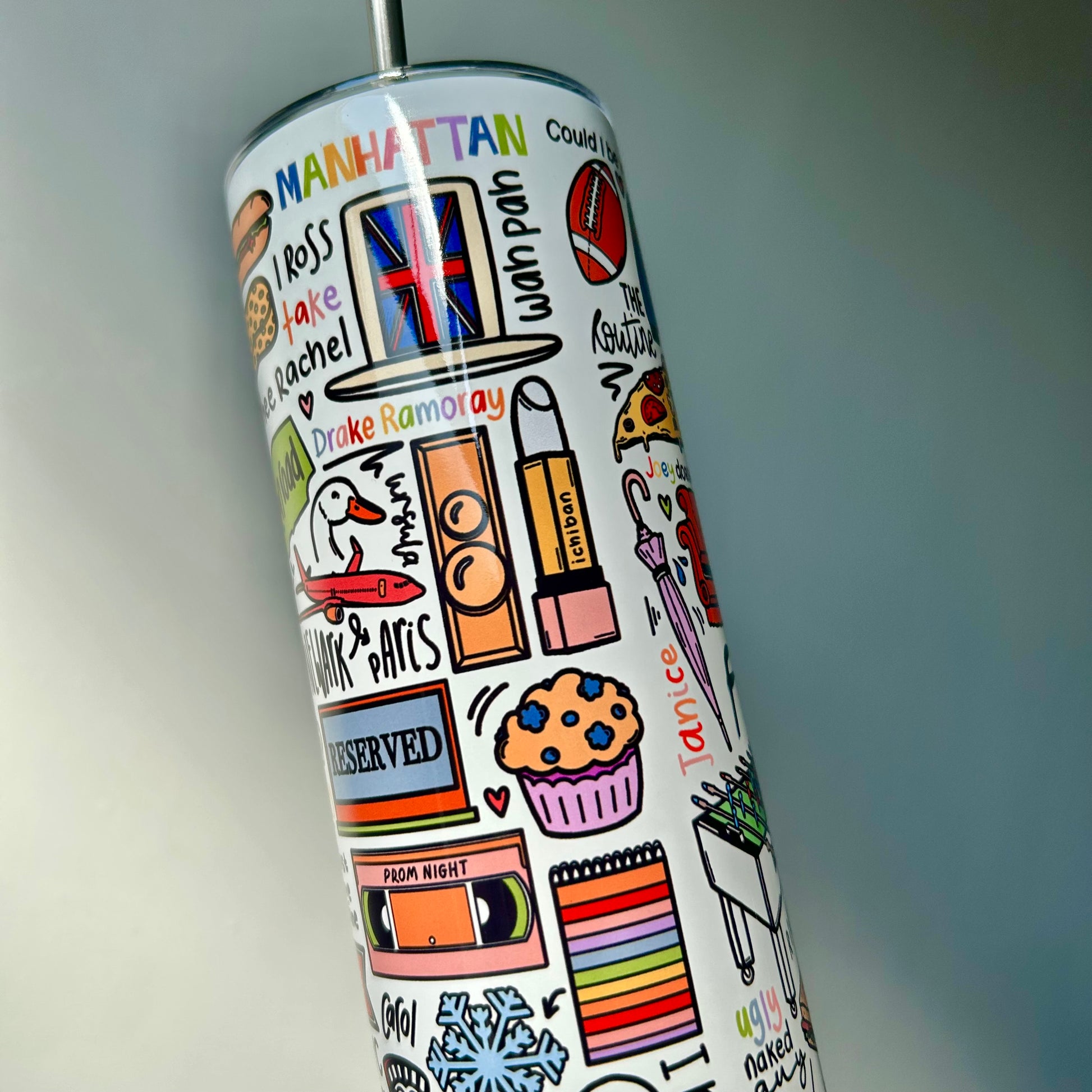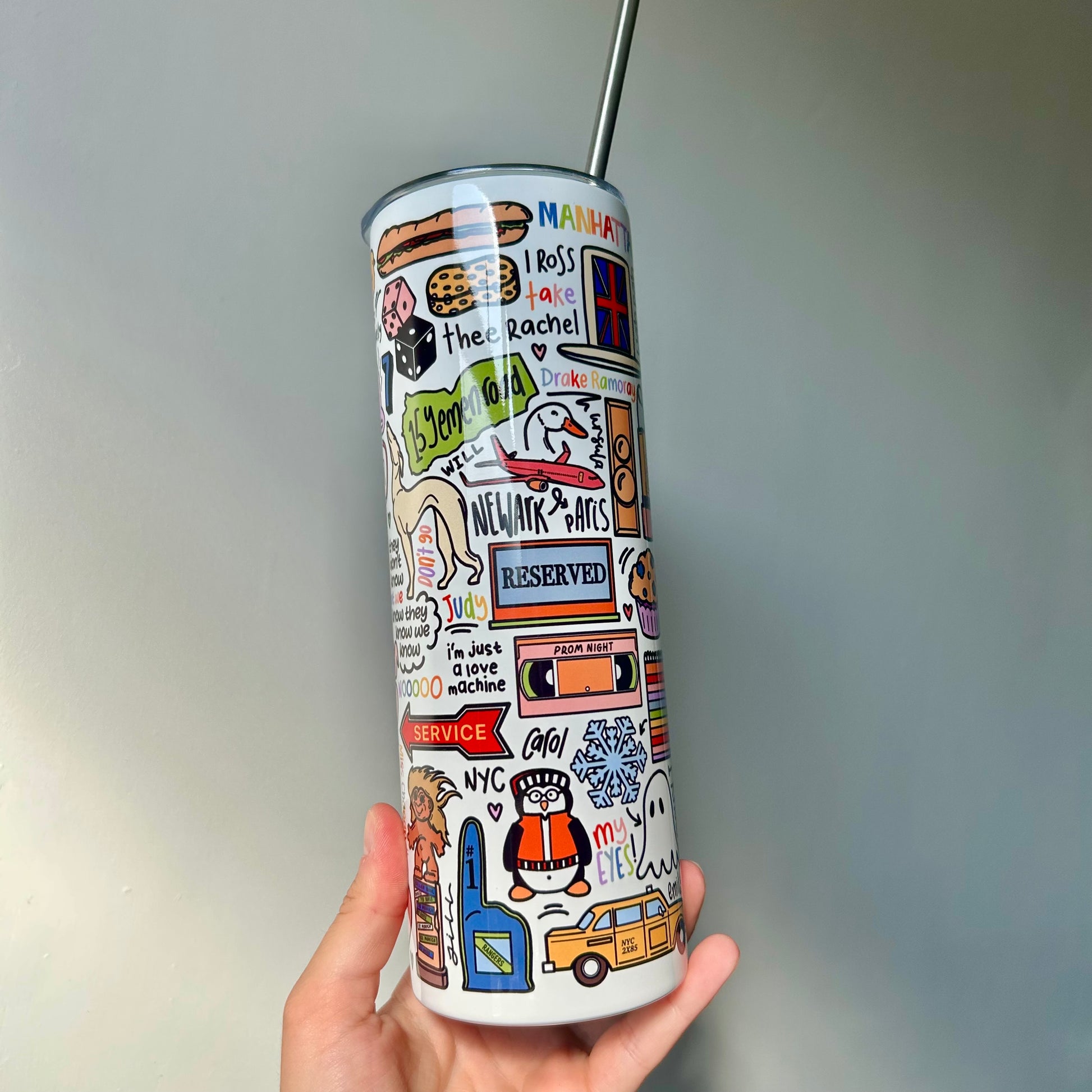 🥤Get nostalgic with your beverages with our travel drinks cup! This versatile cup keeps your drinks hot OR cold and your spirits high with fun lyrics and drawings printed all around the cup. Stay hydrated (and entertained) on the go with our tumblers🥰