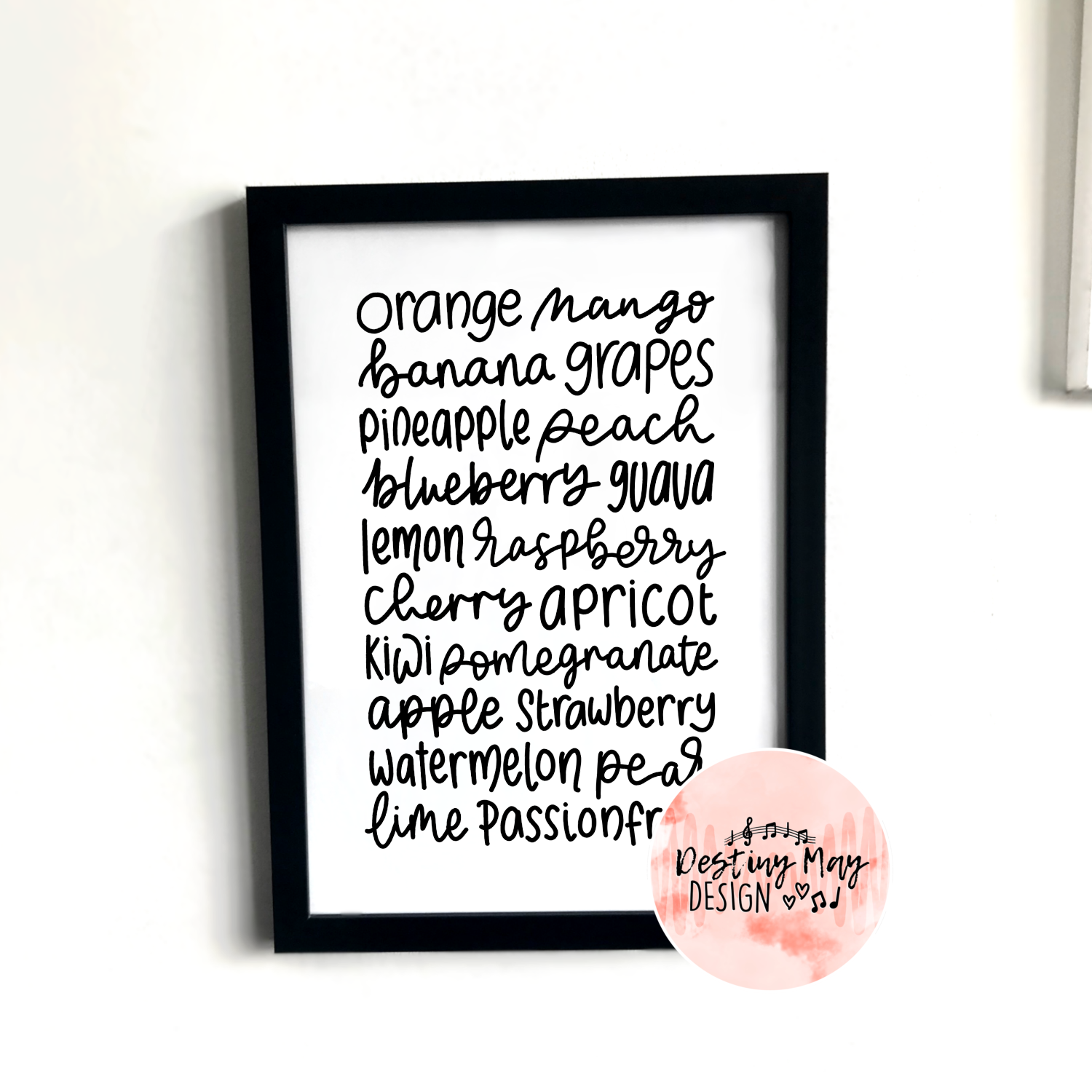 Impresión de lista de frutas