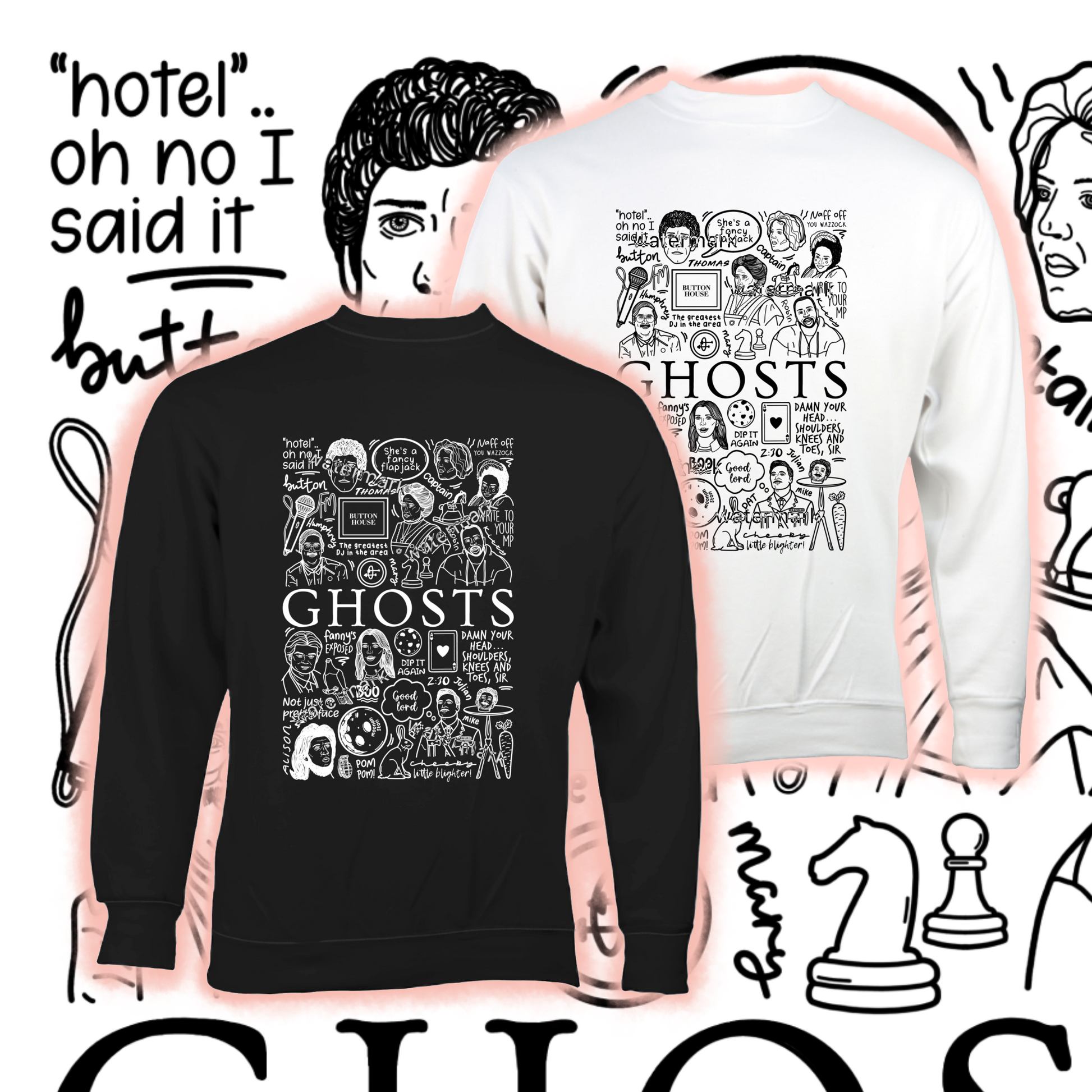 🎬S jersey Ghosts unisex de algodón en blanco o negro.