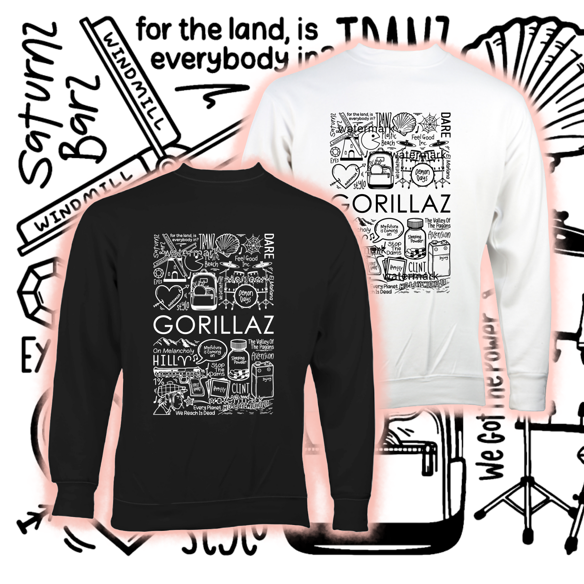 🎶 Jersey Gorillaz unisex de algodón en blanco o negro.