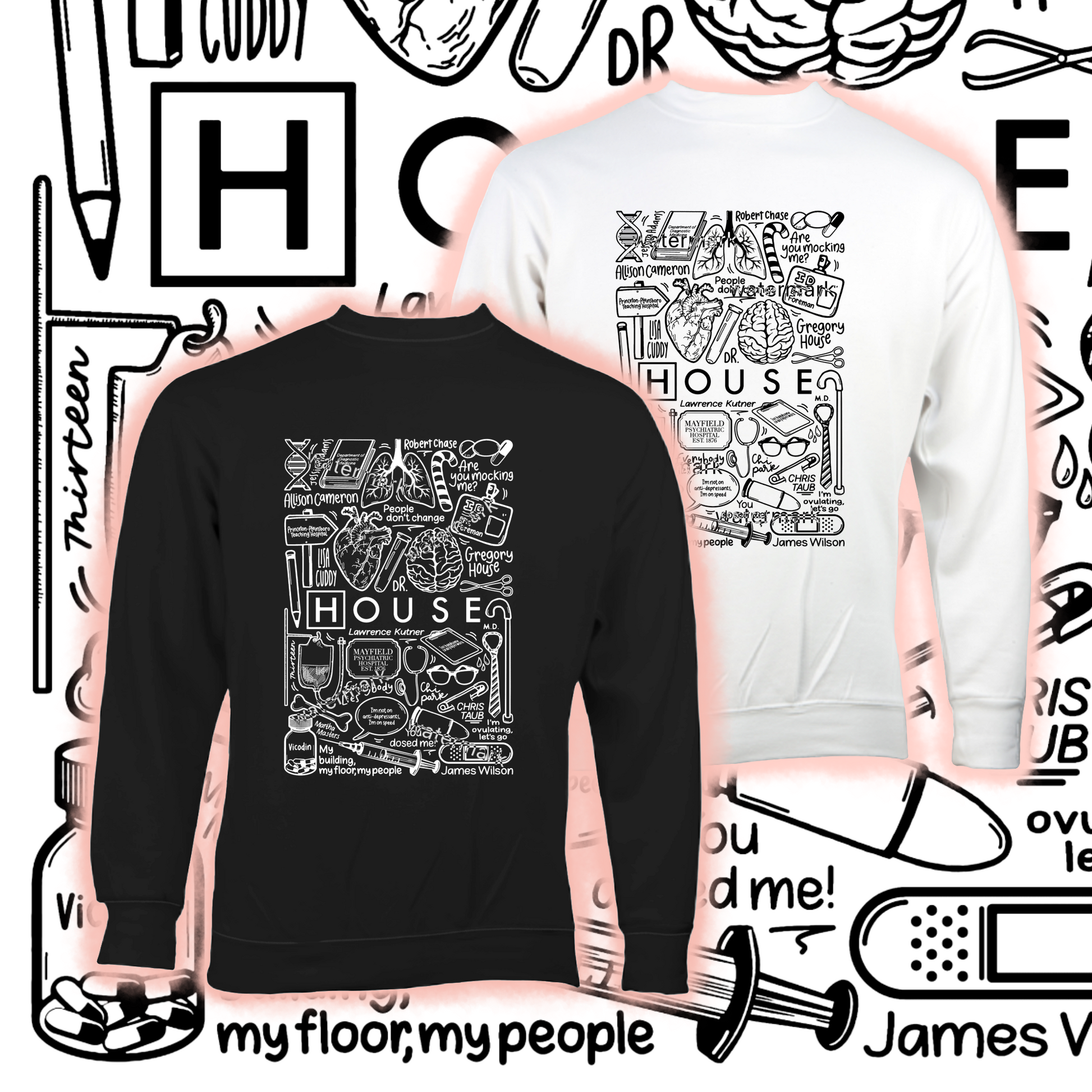 🎬 Jersey House MD unisex de algodón en blanco o negro.