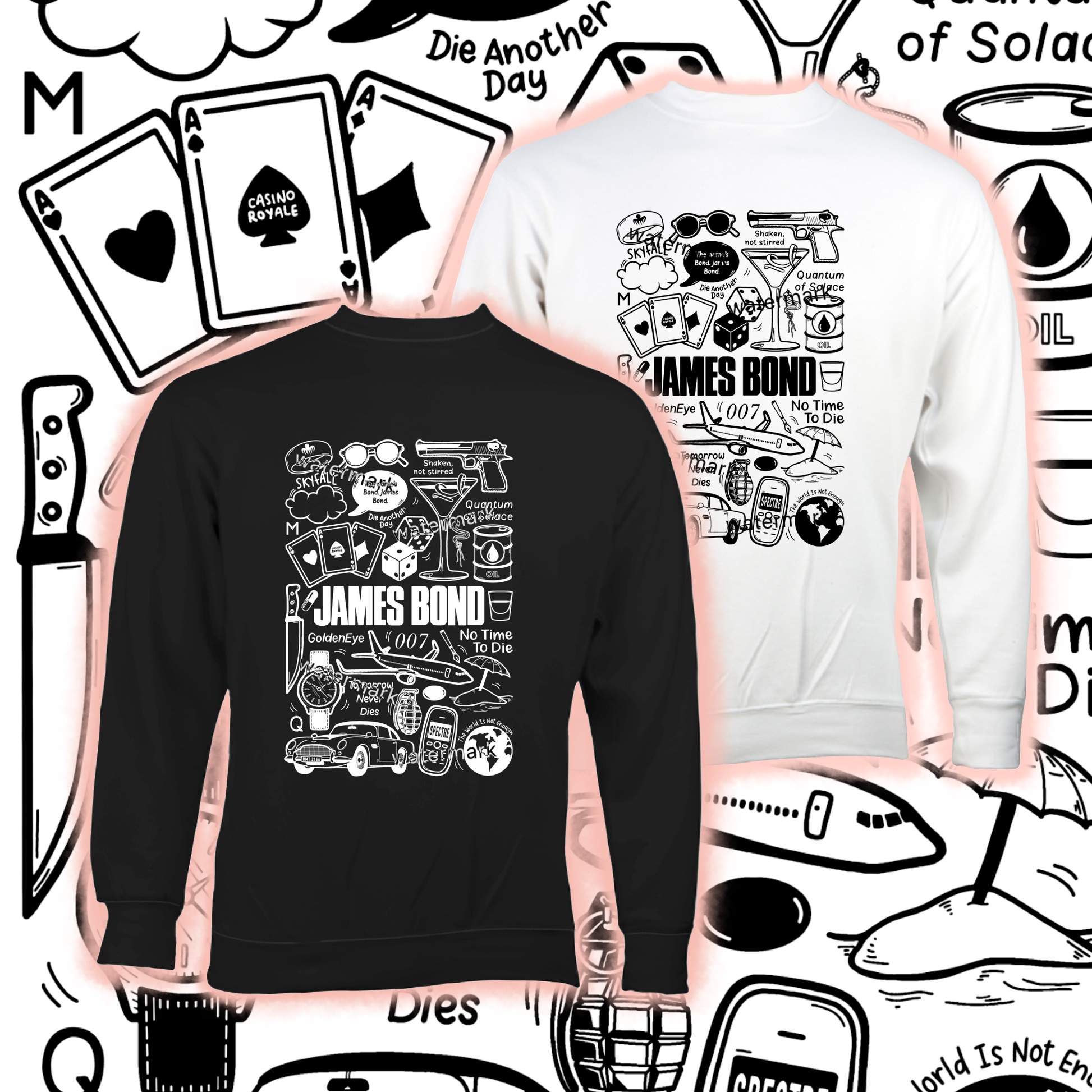 🎬S jersey unisex James Bond de algodón en blanco o negro.