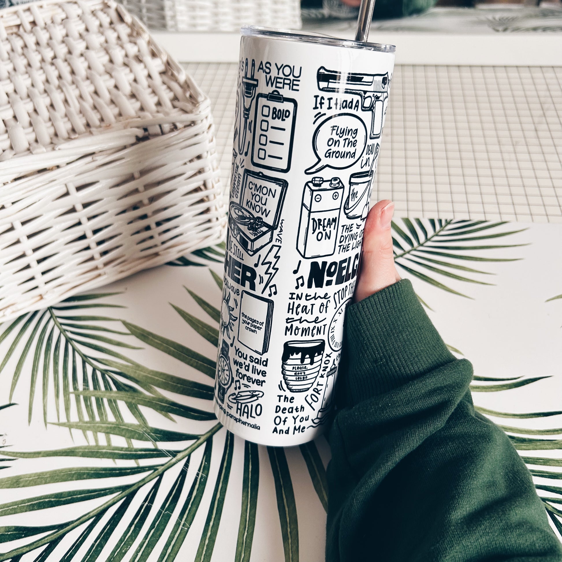 🥤Get lyrical with your beverages with our travel drinks cup! This versatile cup keeps your drinks hot OR cold and your spirits high with fun lyrics and drawings printed all around the cup. Stay hydrated (and entertained) on the go with our tumblers🥰