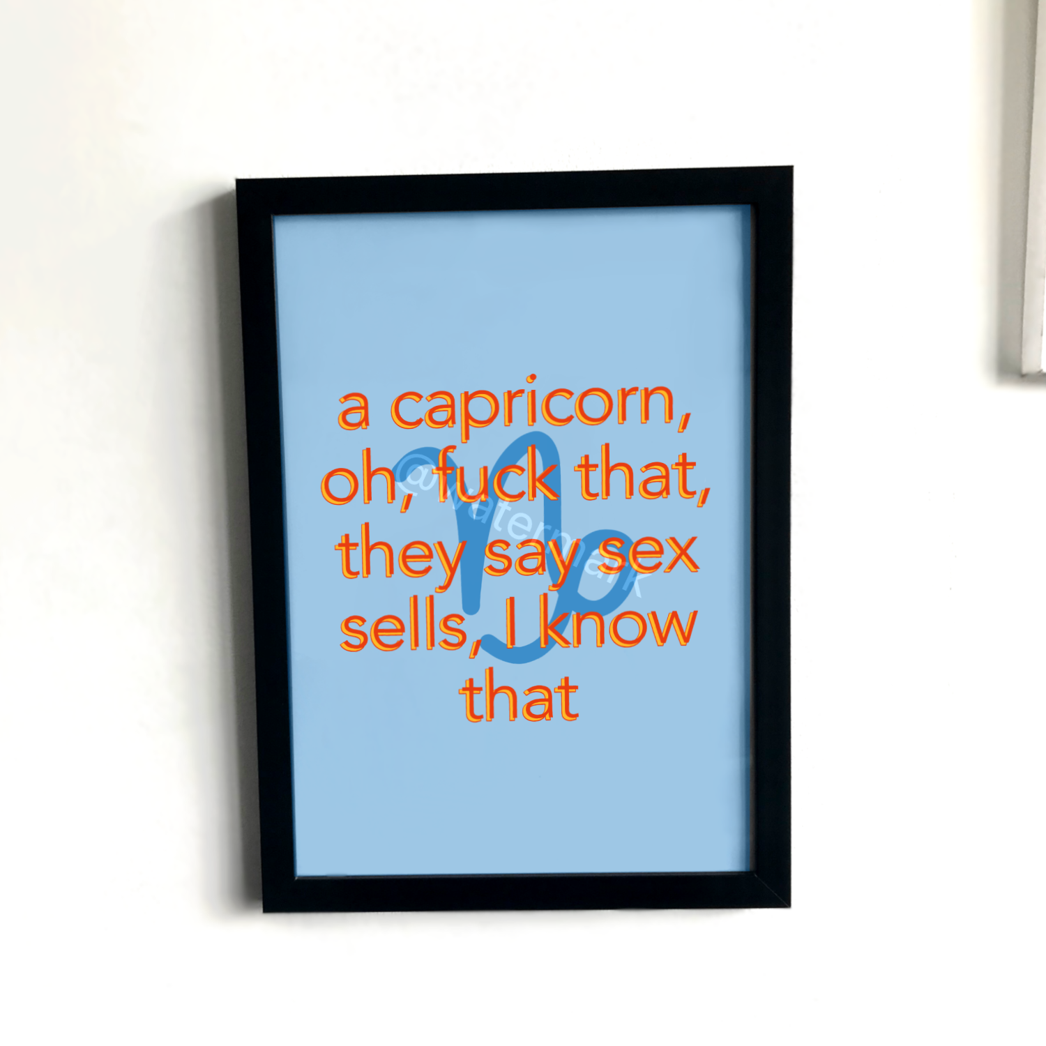 🖤 Impresión de la letra de Lovejoy 'A capricornio..' en azul oscuro.