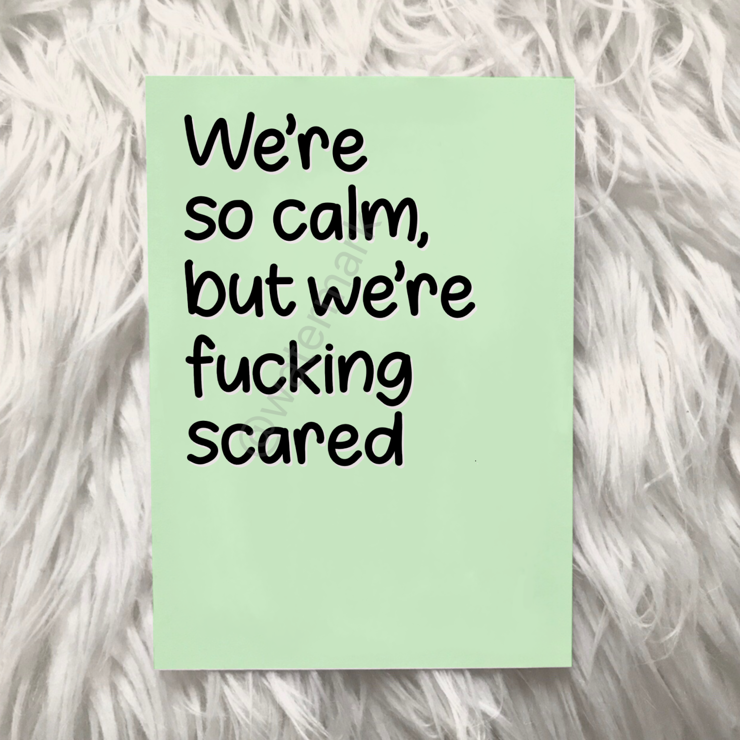 🖤Letra de Lovejoy 'estamos tan tranquilos, pero estamos jodidamente asustados' en verde menta.