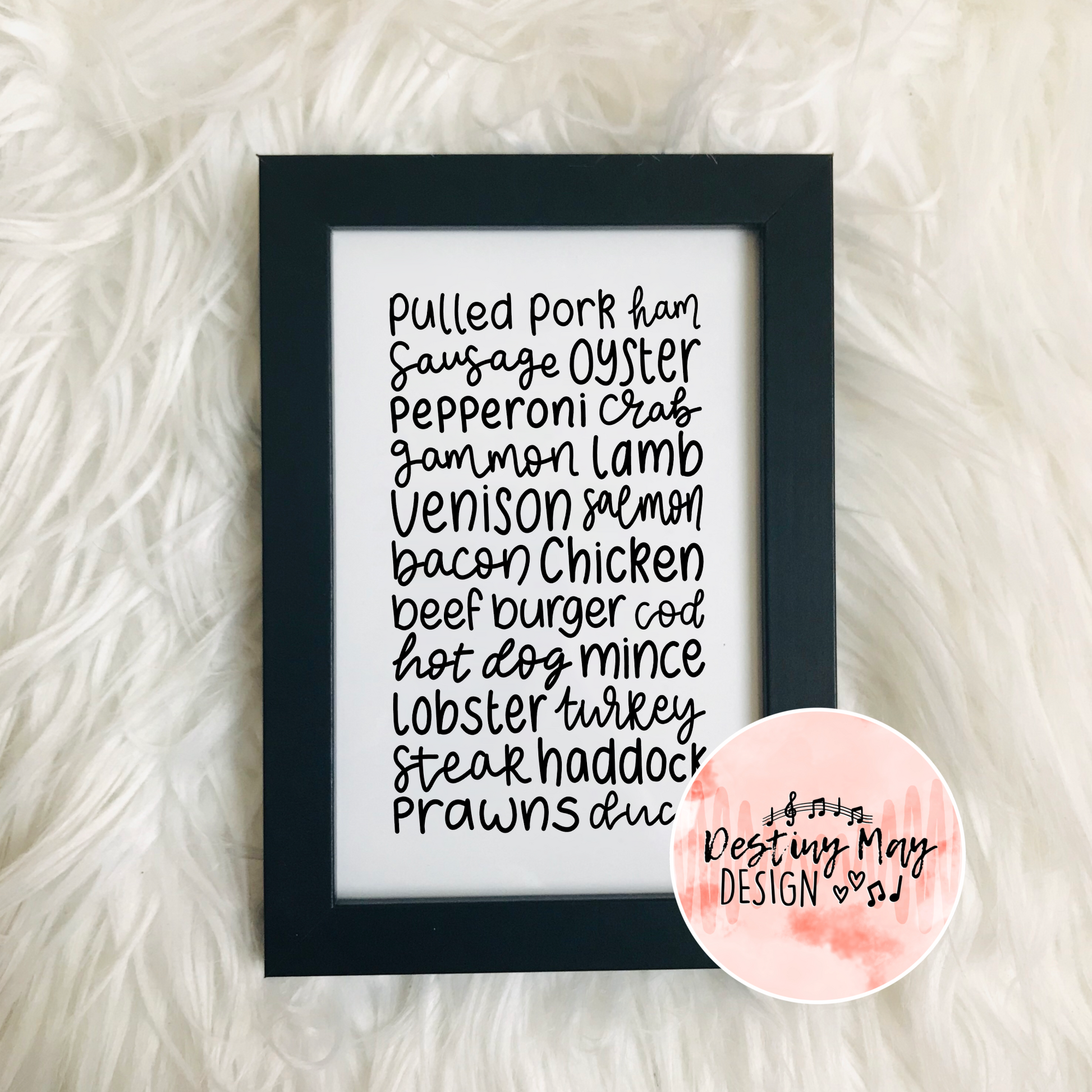 🖤Carne: Diseño divertido para amantes de la comida hecho a mano por mí mismo a través de una investigación... y básicamente cero experiencia personal, y la carne no es una de nuestras impresiones favoritas de la lista de amantes de la comida, a menos que pueda agregar 'Quorn' o 'Linda McCartney' delante de ella. 😂🌱 (¿Quizás necesito hacer una versión alternativa?💭). Este arte de pared es una adición única a tu cocina en ese pequeño espacio vacío que necesita ser llenado para que tu hogar se sienta completo.