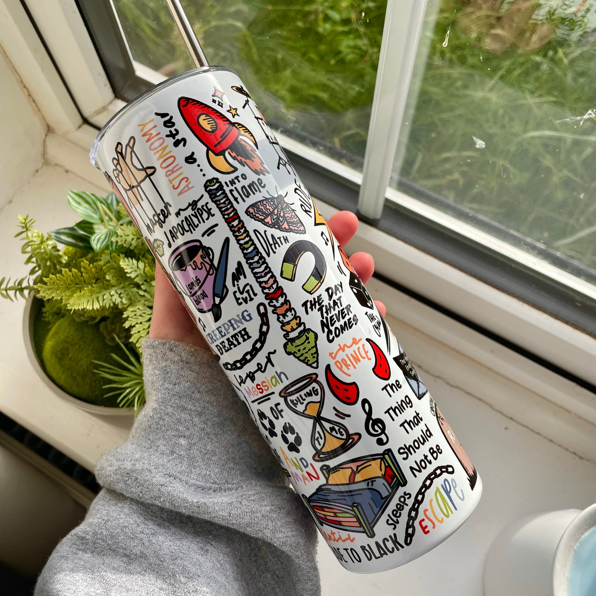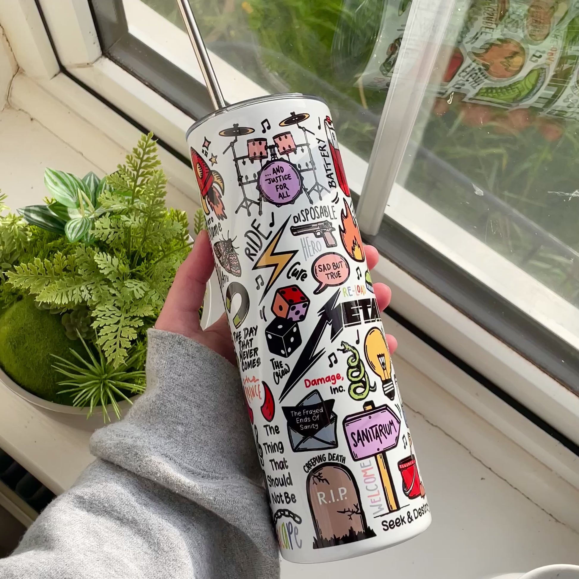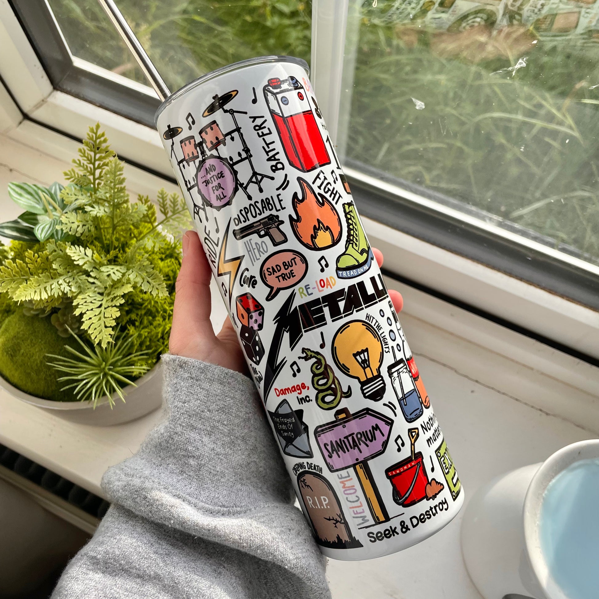🥤Get lyrical with your beverages with our Metallica travel drinks cup! This versatile cup keeps your drinks hot OR cold and your spirits high with fun lyrics and drawings printed all around the cup. Stay hydrated (and entertained) on the go with our tumblers🥰