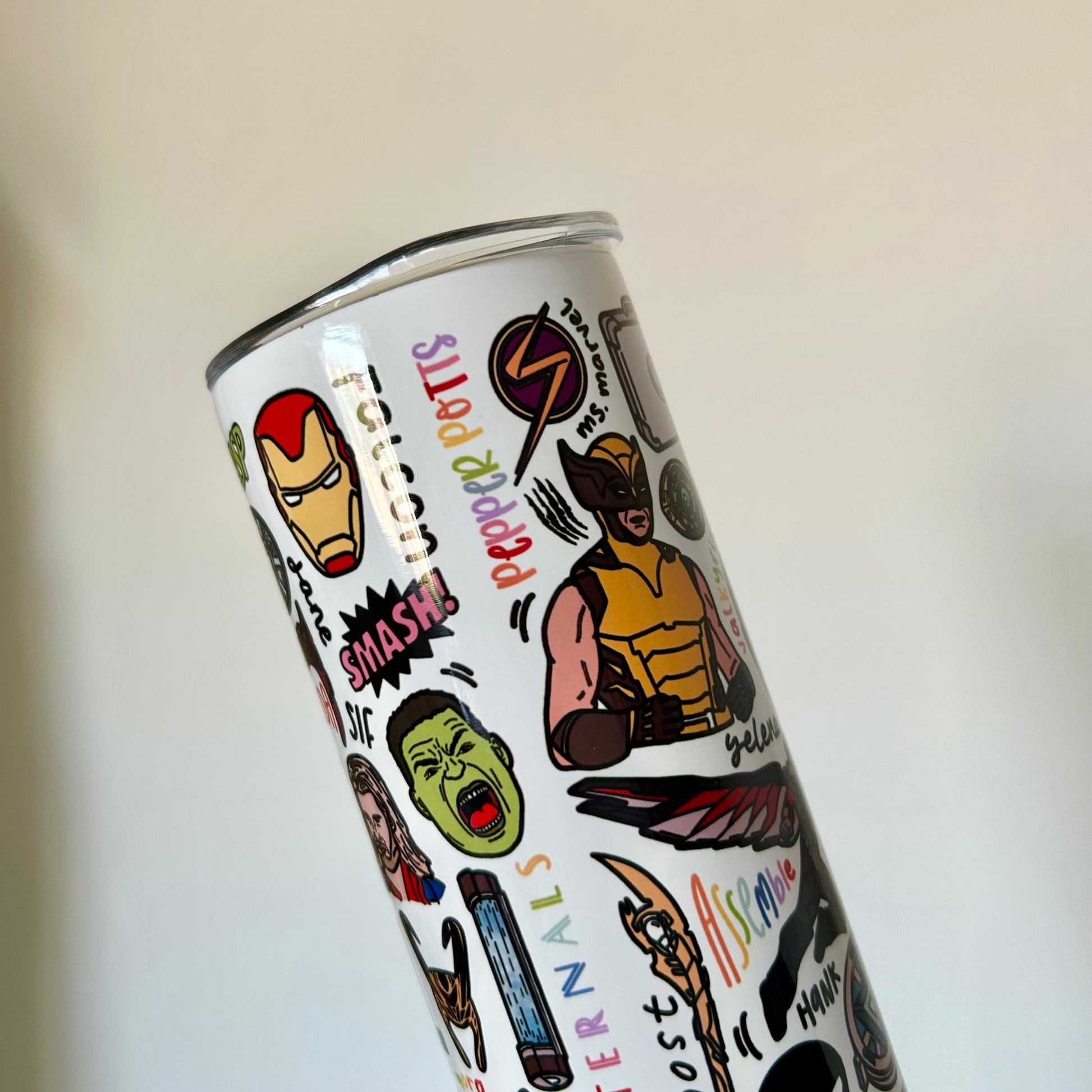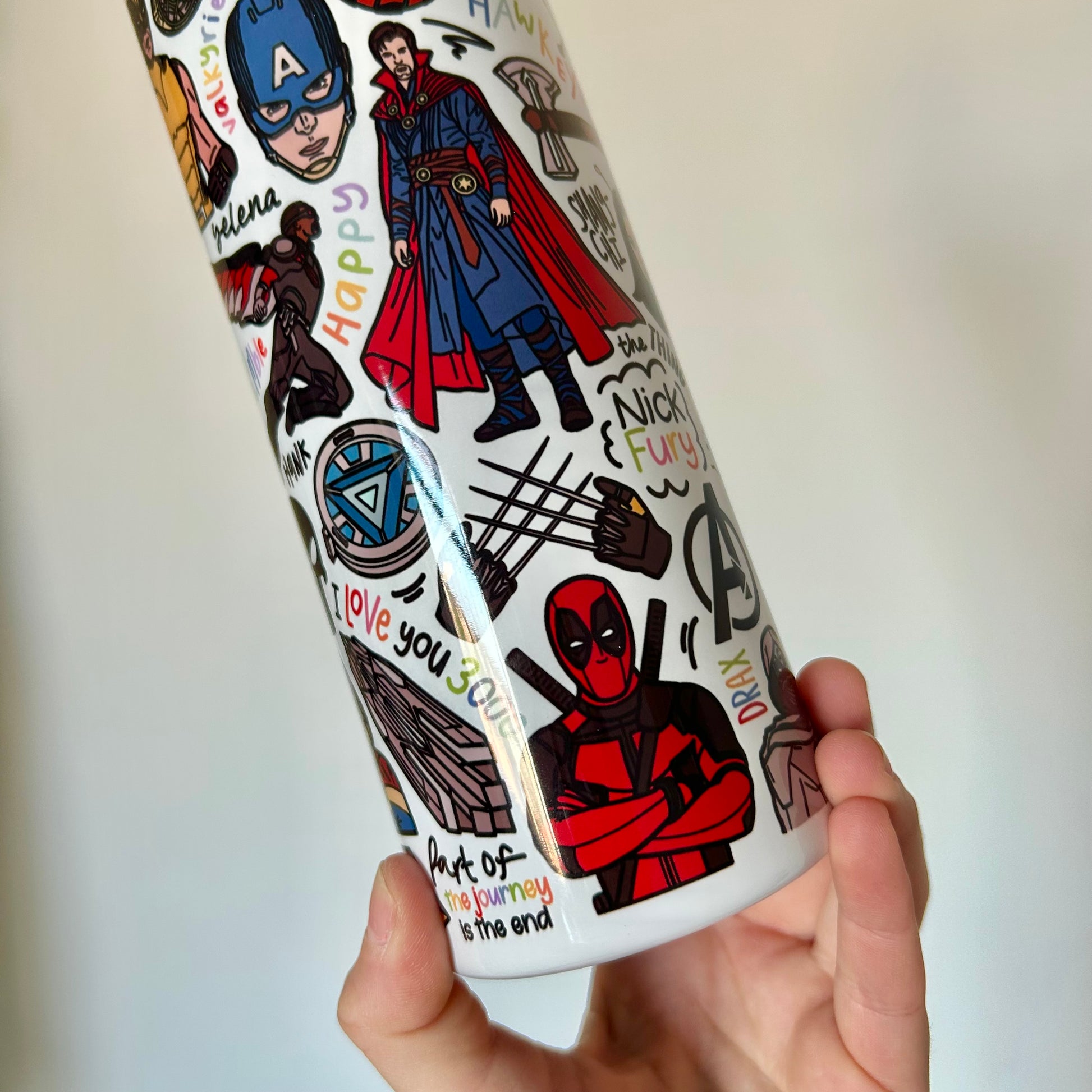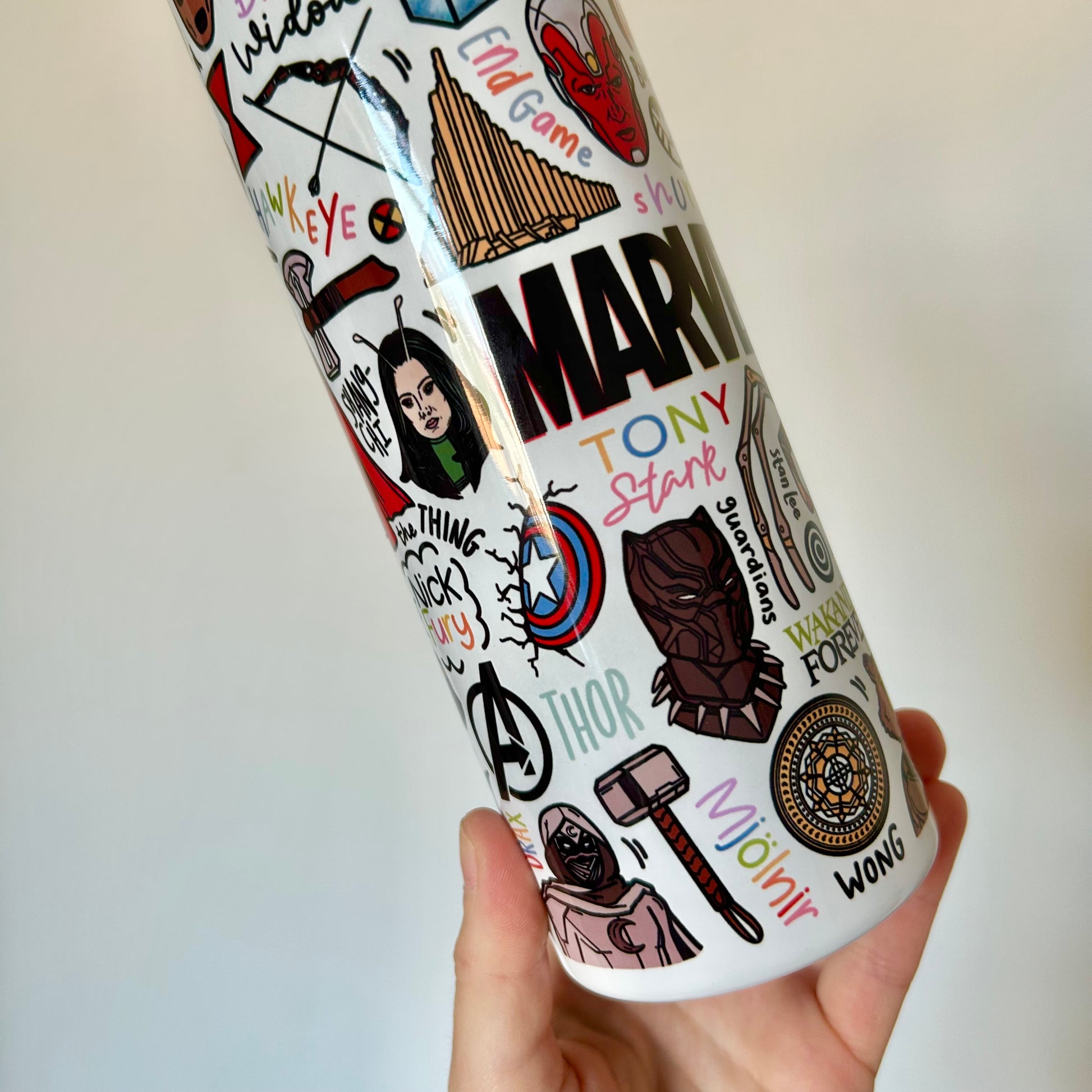 ☕️20oz double walled stainless steel cup with metal straw included. Ideal for upright use, we recommend our bottles instead if you require your cup to be leak-proof.