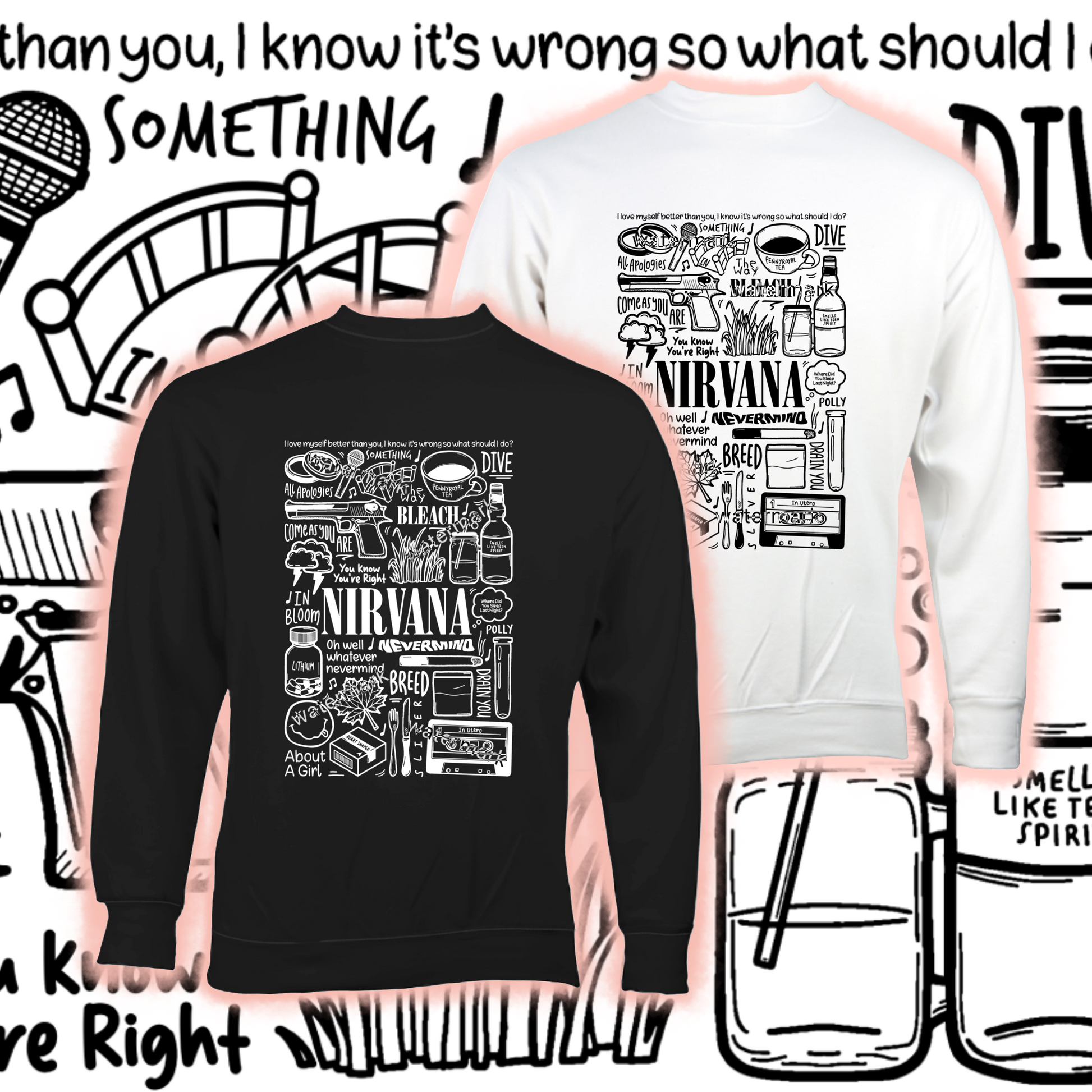 🎶 Jersey Nirvana unisex de algodón en blanco o negro.