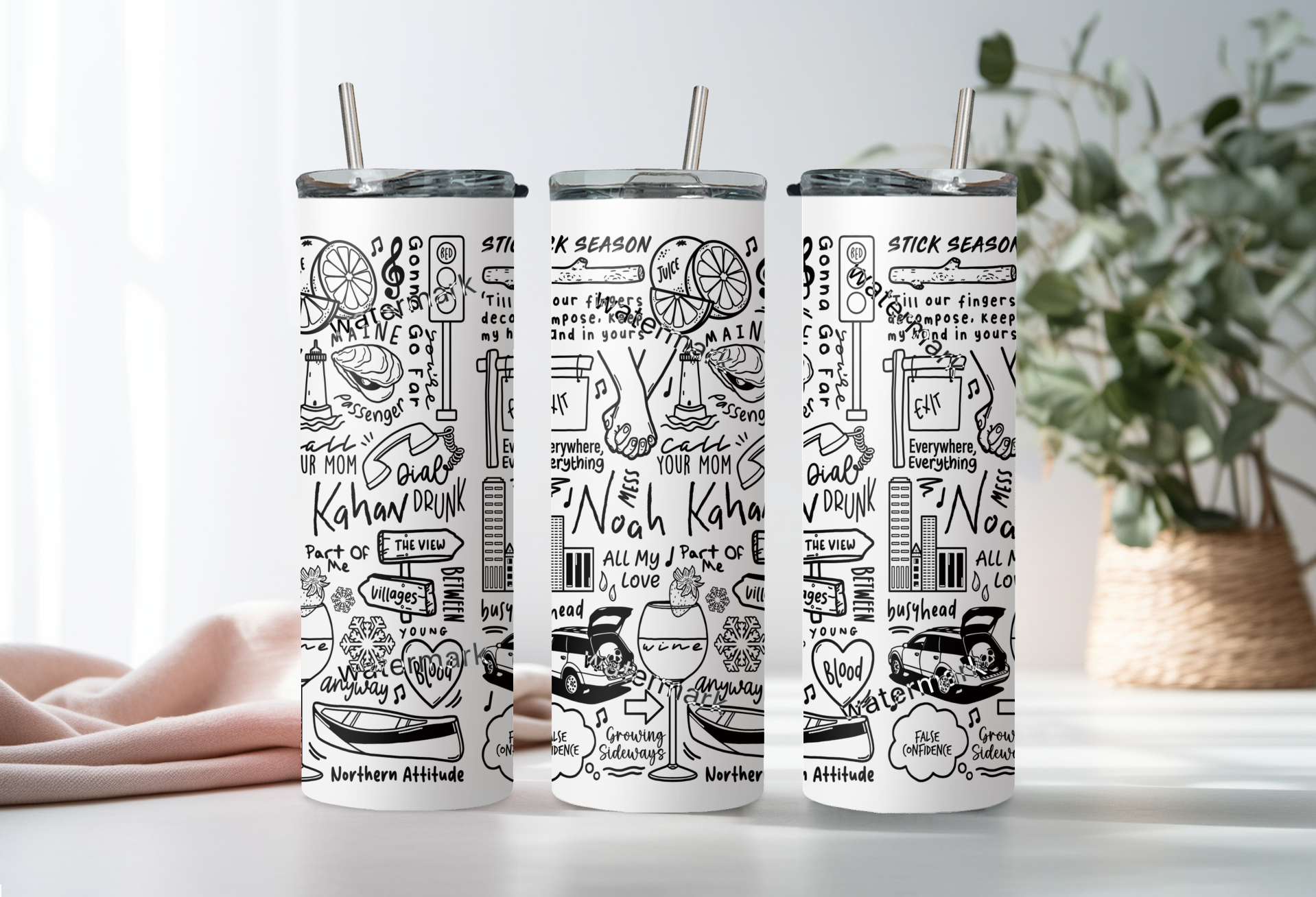 🥤Get lyrical with your beverages with our travel drinks cup! This versatile cup keeps your drinks hot OR cold and your spirits high with fun lyrics and drawings printed all around the cup. Stay hydrated (and entertained) on the go with our tumblers🥰