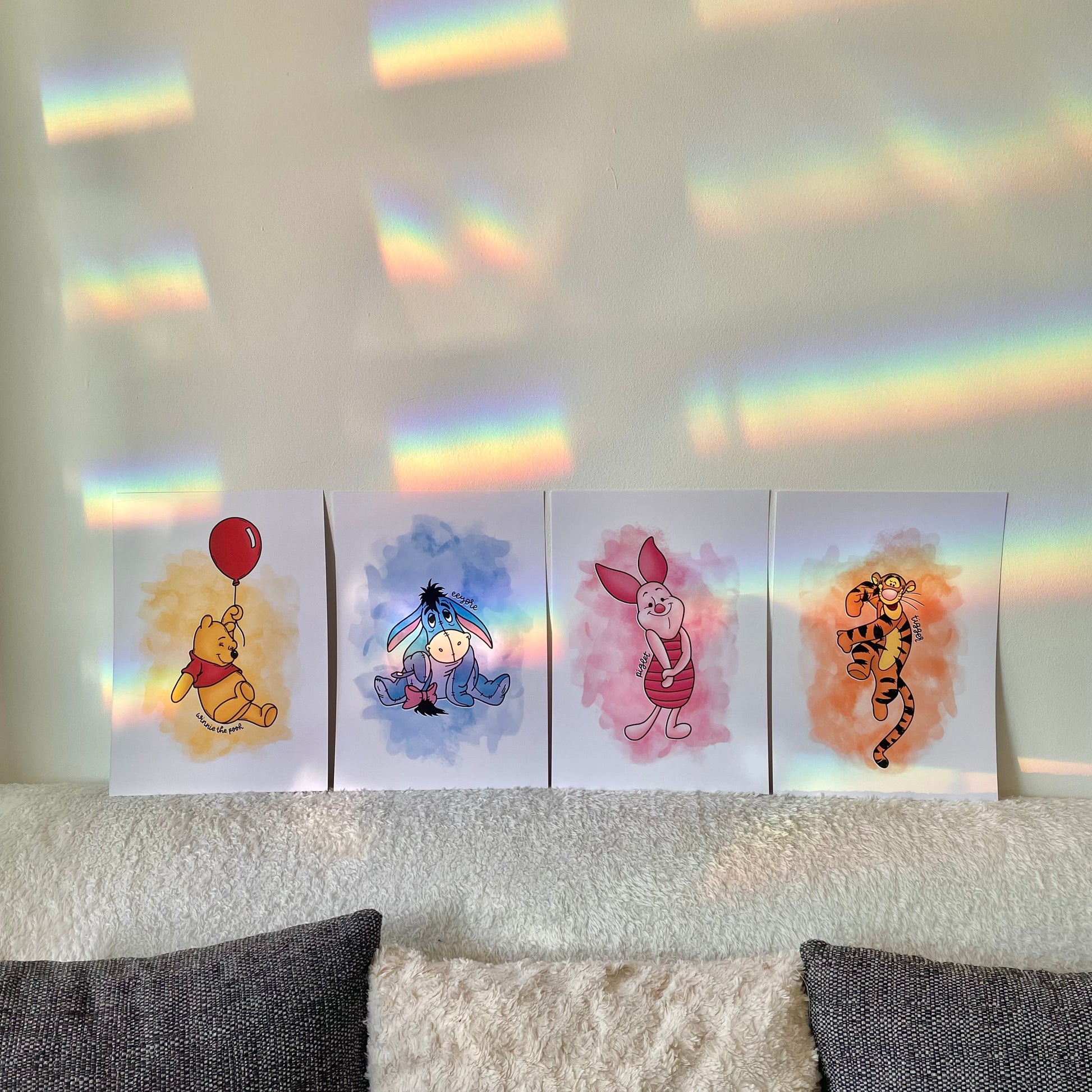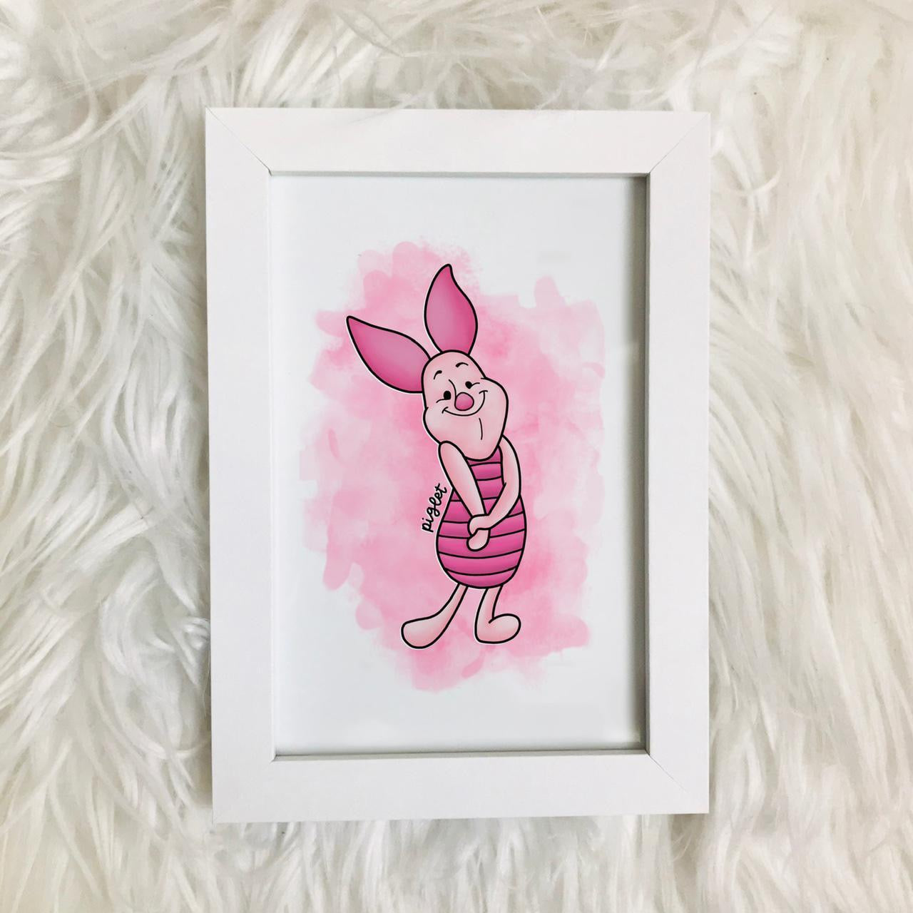 🍯Póster de Piglet Winnie The Pooh que incluye una imagen de Piglet delante de un fondo de acuarela rosa, con el nombre del personaje escrito a mano.