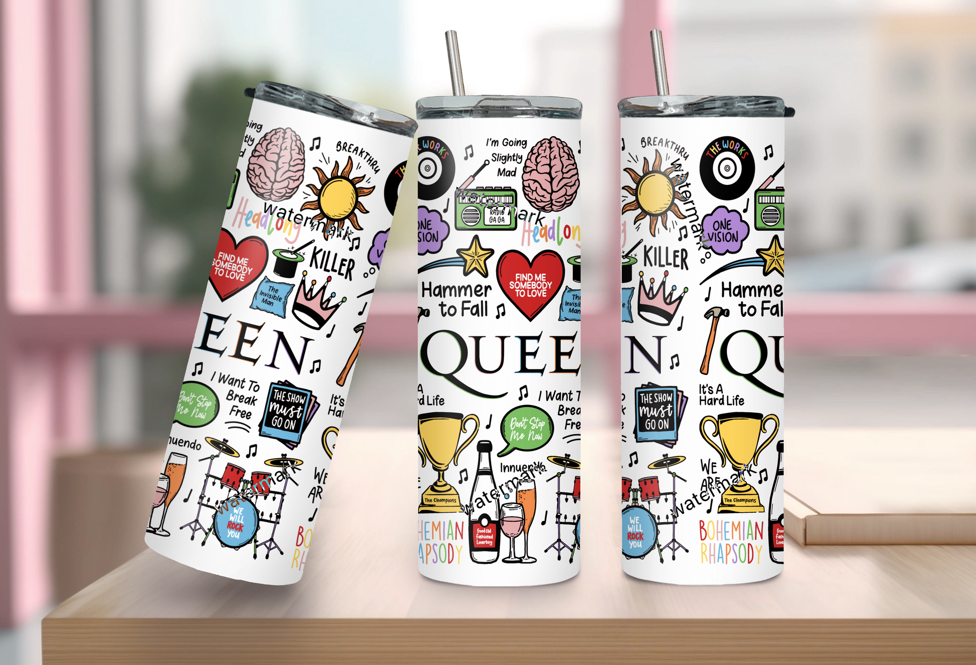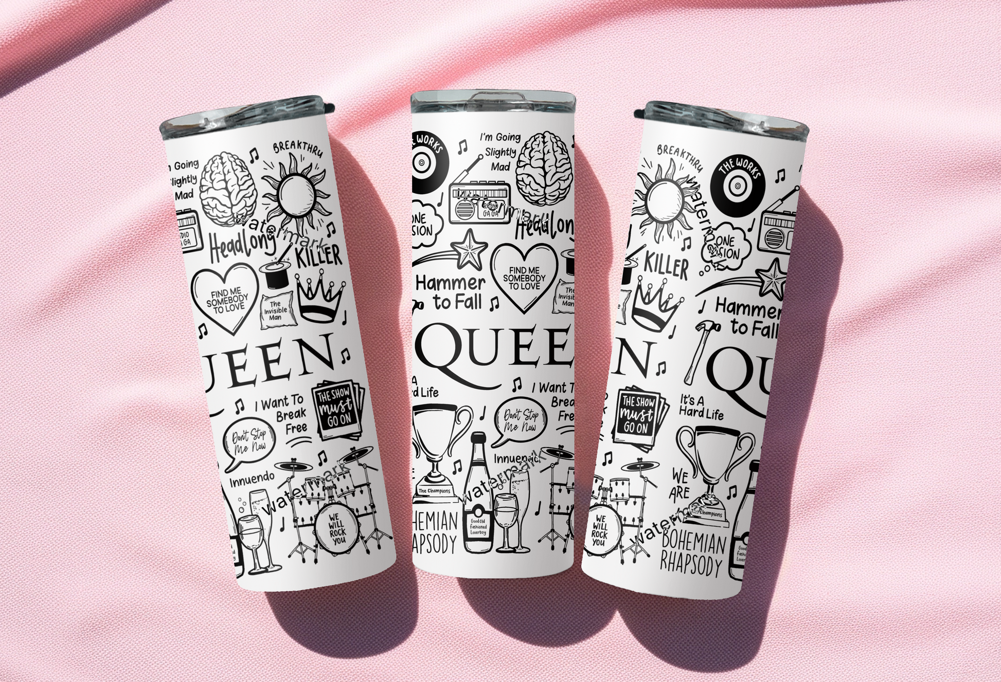 🥤Get lyrical with your beverages with our Queen travel drinks cup! This versatile cup keeps your drinks hot OR cold and your spirits high with fun lyrics and drawings printed all around the cup. Stay hydrated (and entertained) on the go with our tumblers🥰