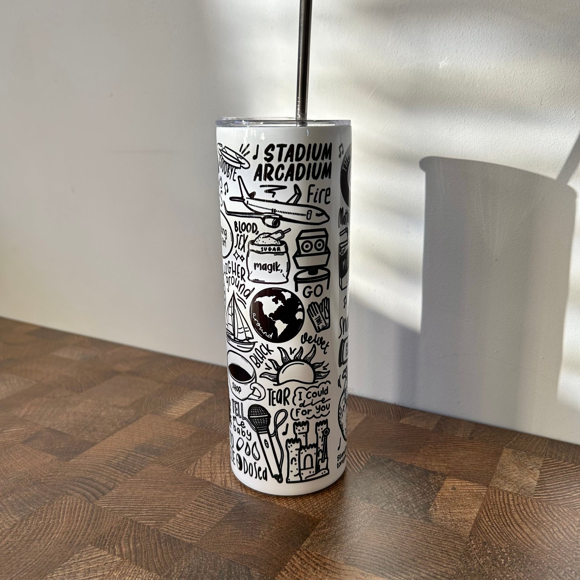 🥤Get lyrical with your beverages with our RHCP travel drinks cup! This versatile cup keeps your drinks hot OR cold and your spirits high with fun lyrics and drawings printed all around the cup. Stay hydrated (and entertained) on the go with our tumblers🥰