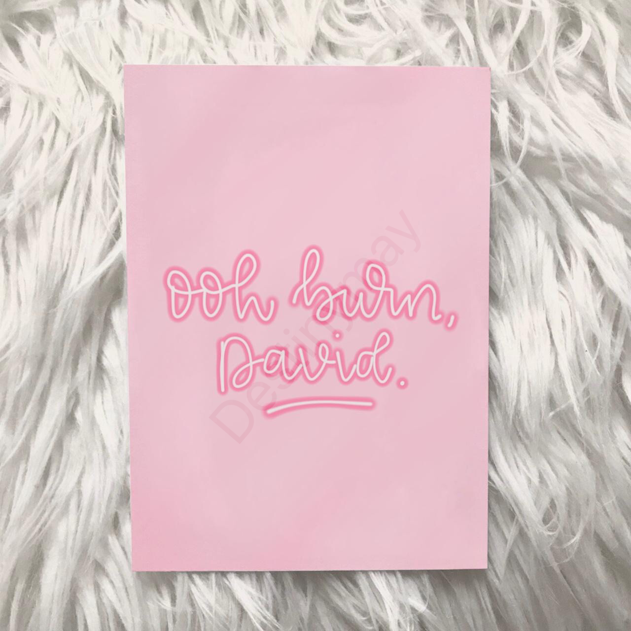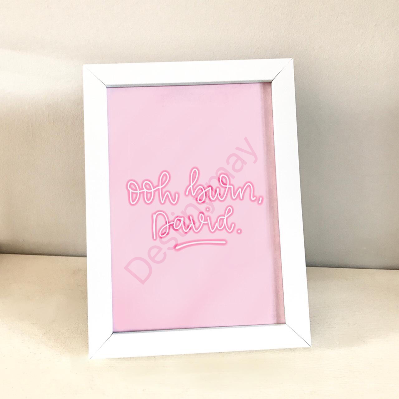 🔥Póster de citas de programas de televisión que incluye la cita "Ooh, quema a David" de la serie en una fuente rosa brillante para que coincida con las otras dos impresiones del conjunto.