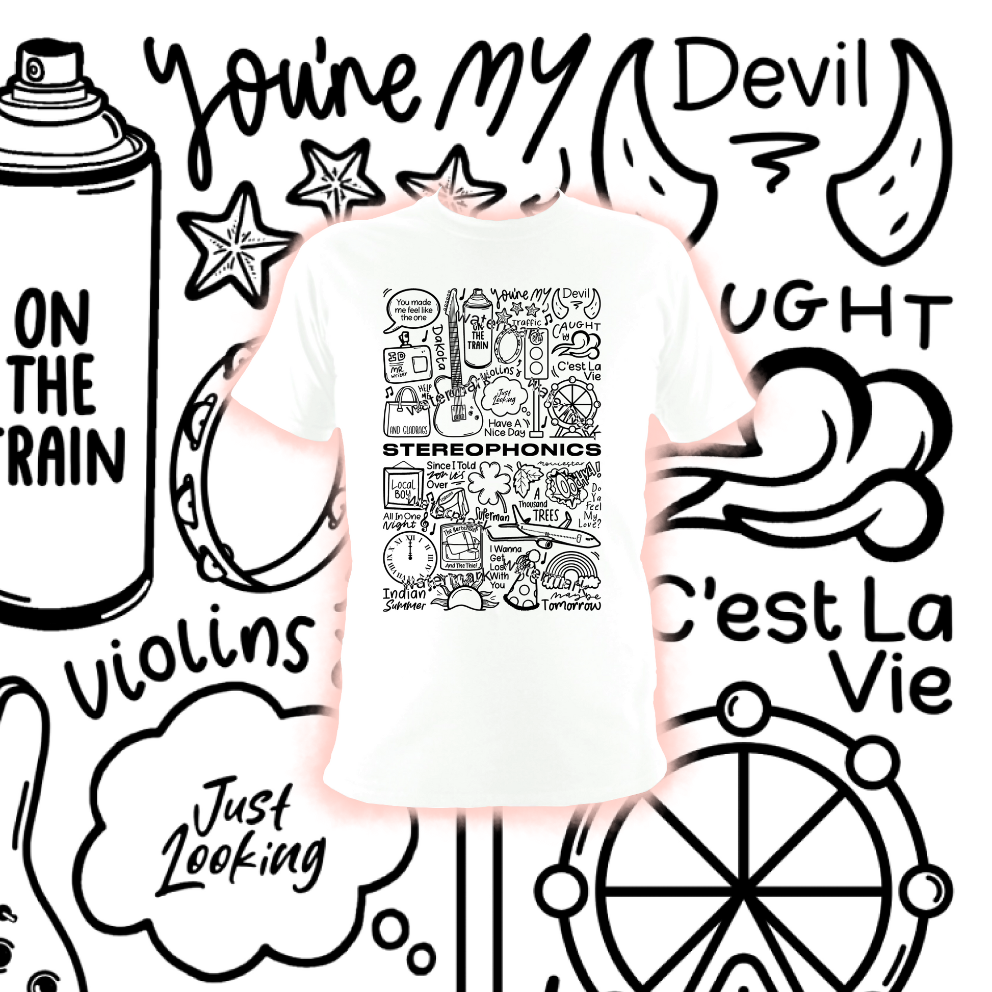 🎶 Camiseta Stereophonics unisex de algodón impresa profesionalmente en blanco o negro.