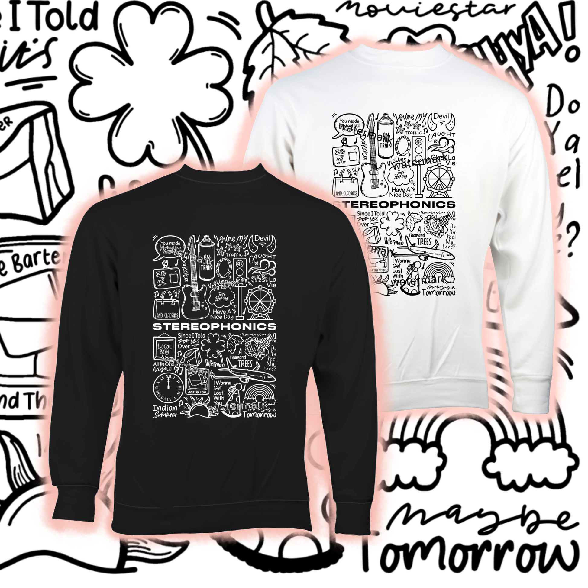 🎶 Jersey Stereophonics unisex de algodón en blanco o negro.