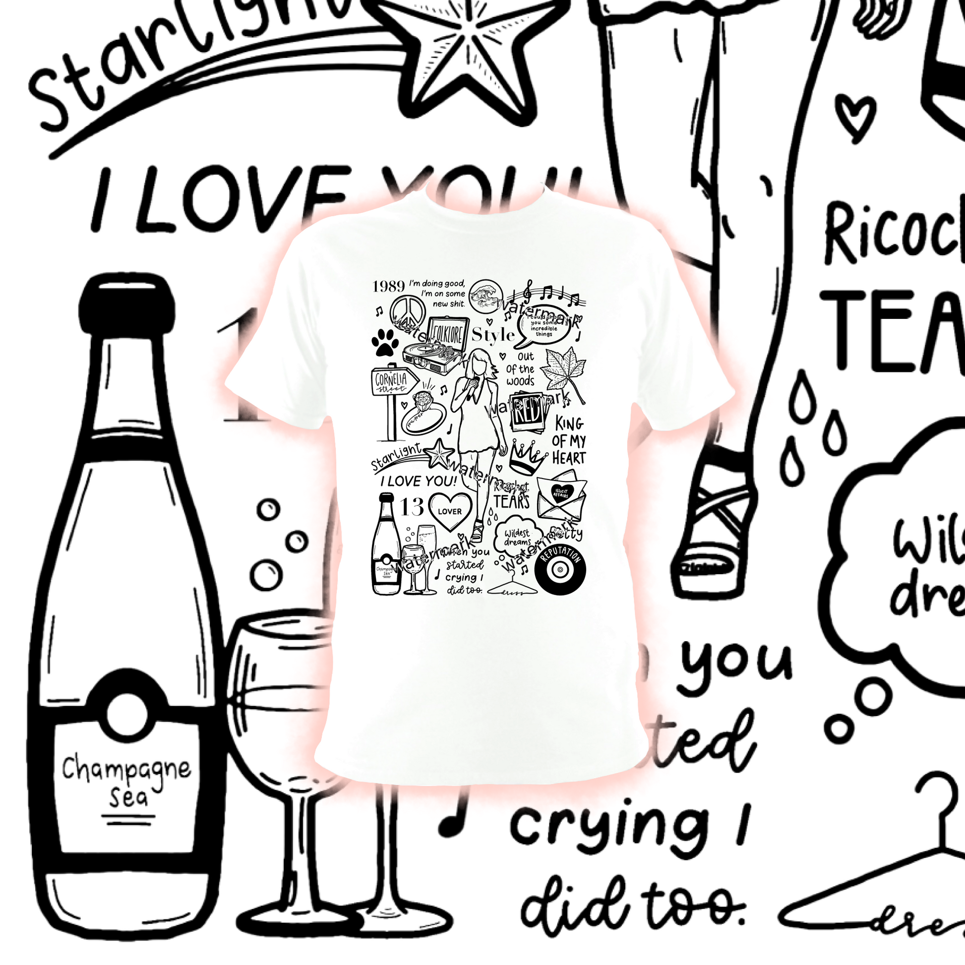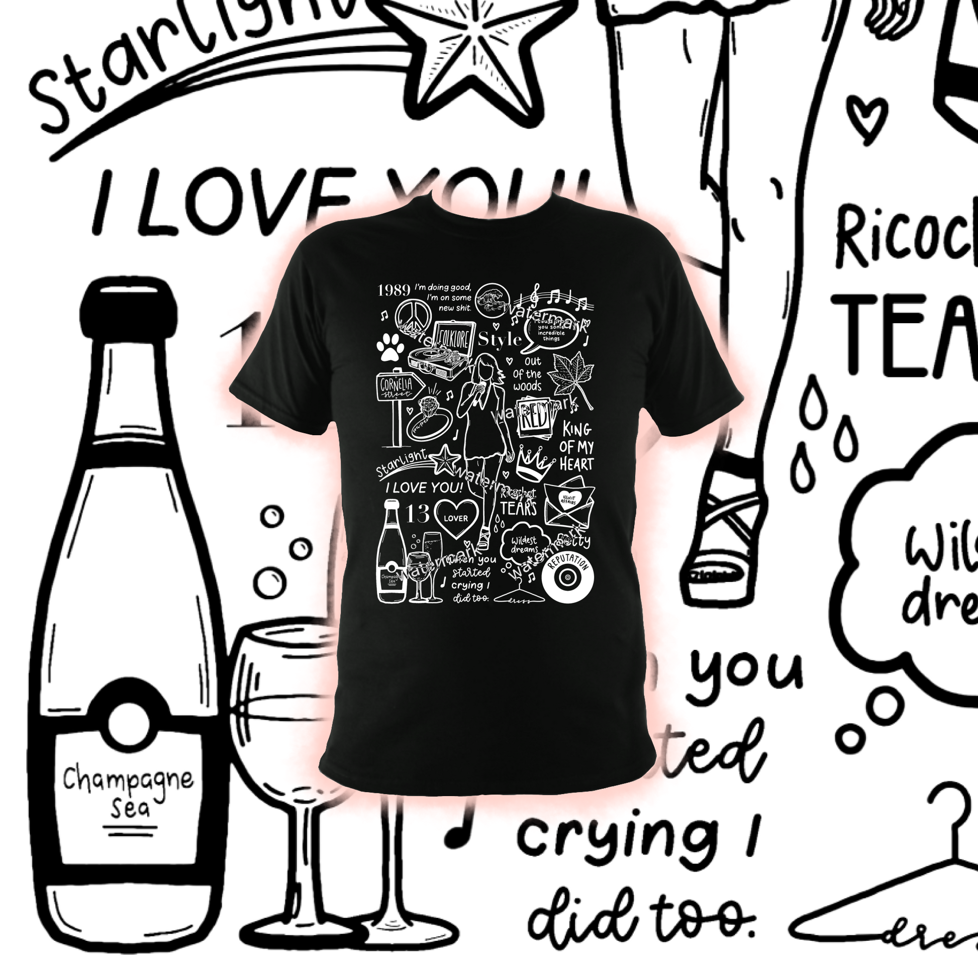 🎶 Camiseta unisex Taylor Swift de algodón impresa profesionalmente en blanco o negro.