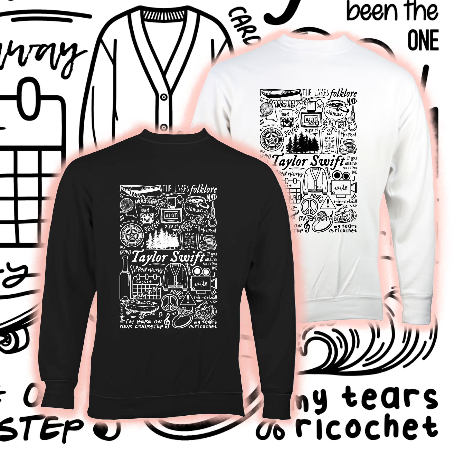 🎶S jersey unisex Taylor Swift Folklore de algodón en blanco o negro.