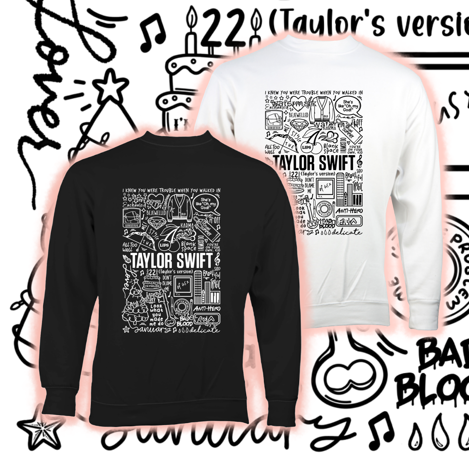 🎶Soft cotton unisex Taylor Swift jumper in black or white.