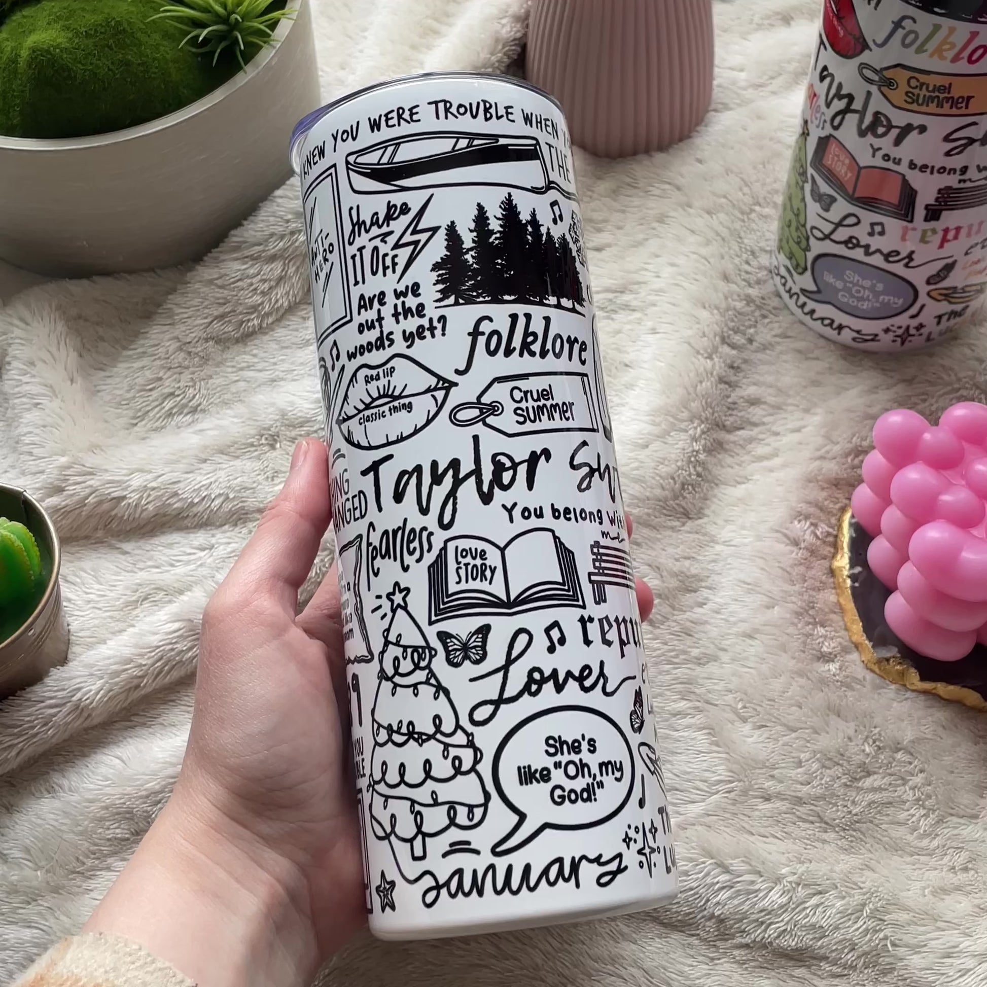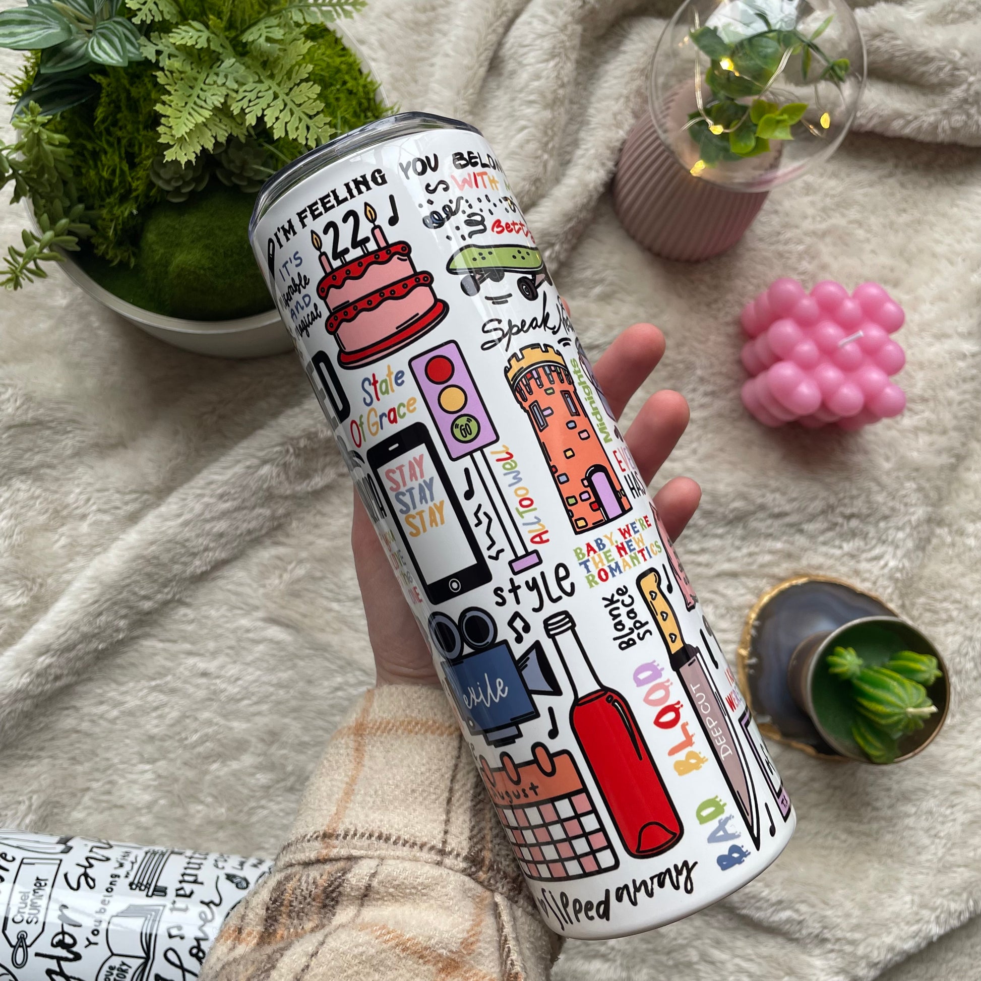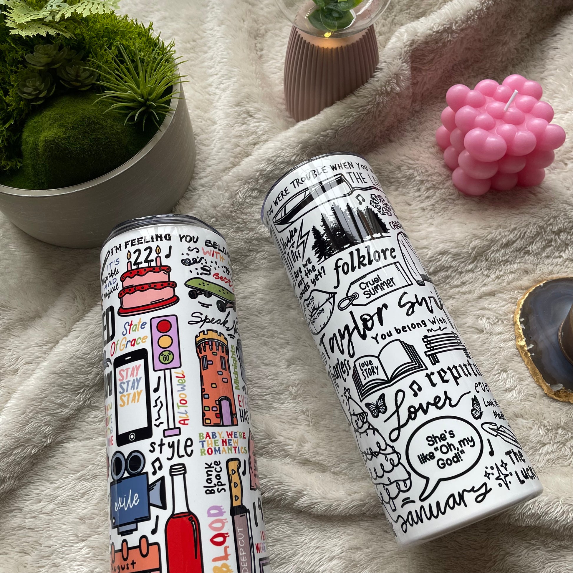 🥤Get lyrical with your beverages with our Taylor Swift travel drinks cup! This versatile cup keeps your drinks hot OR cold and your spirits high with fun lyrics and drawings printed all around the cup. Stay hydrated (and entertained) on the go with our tumblers🥰