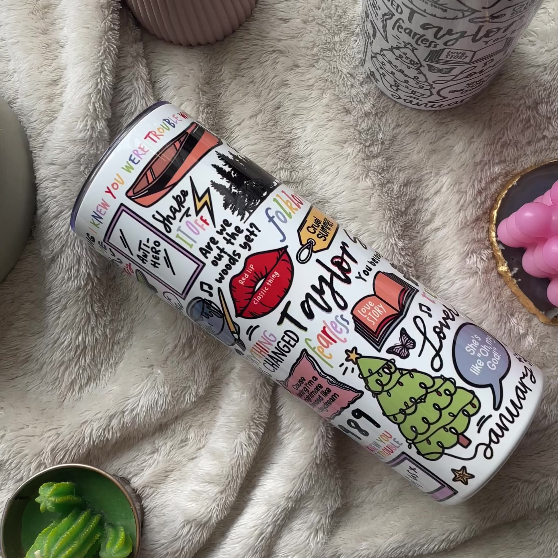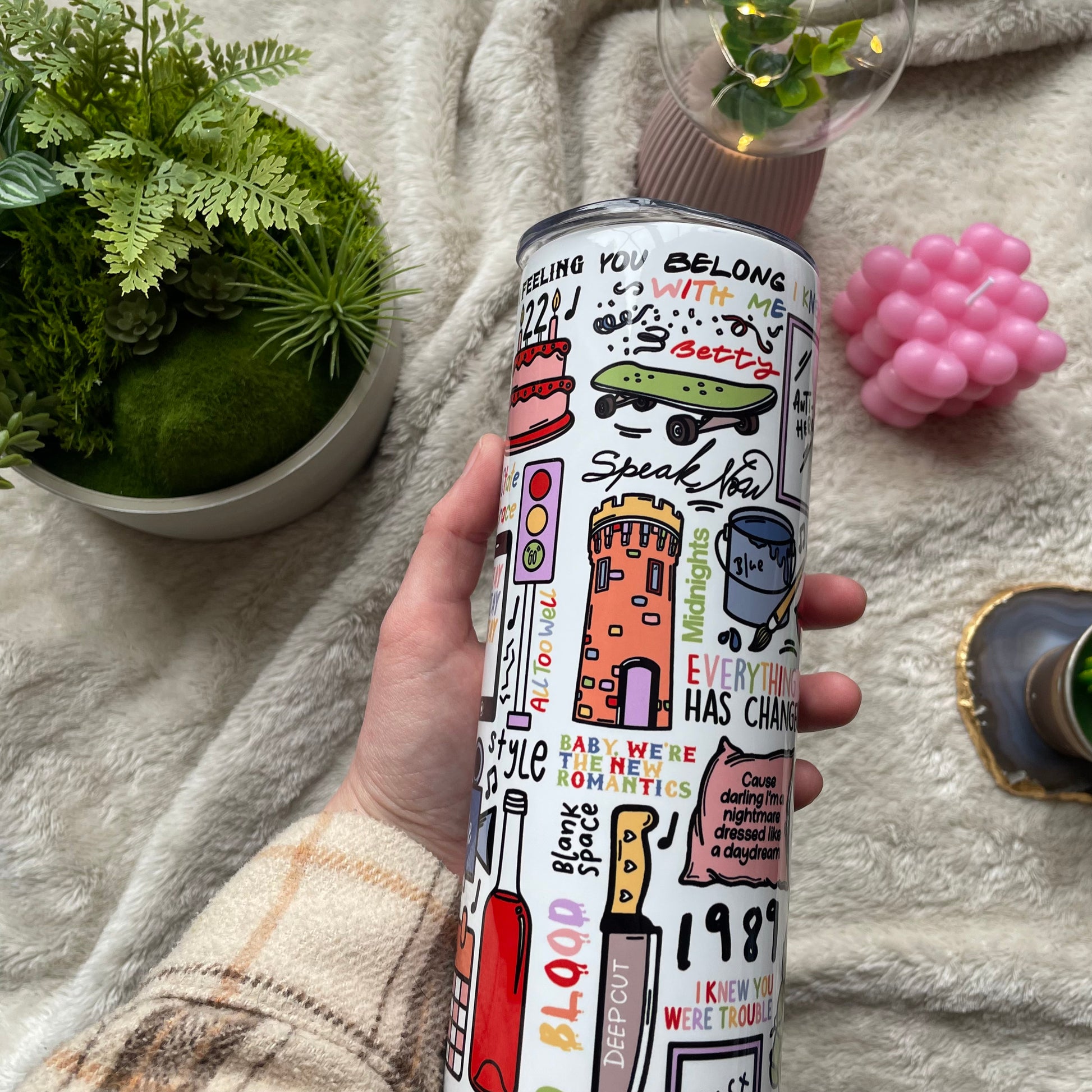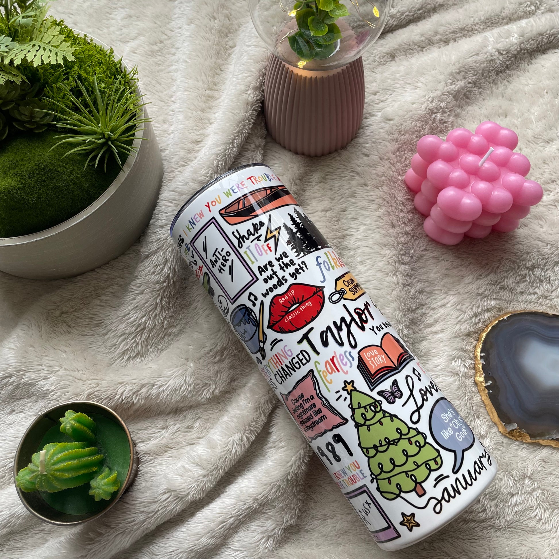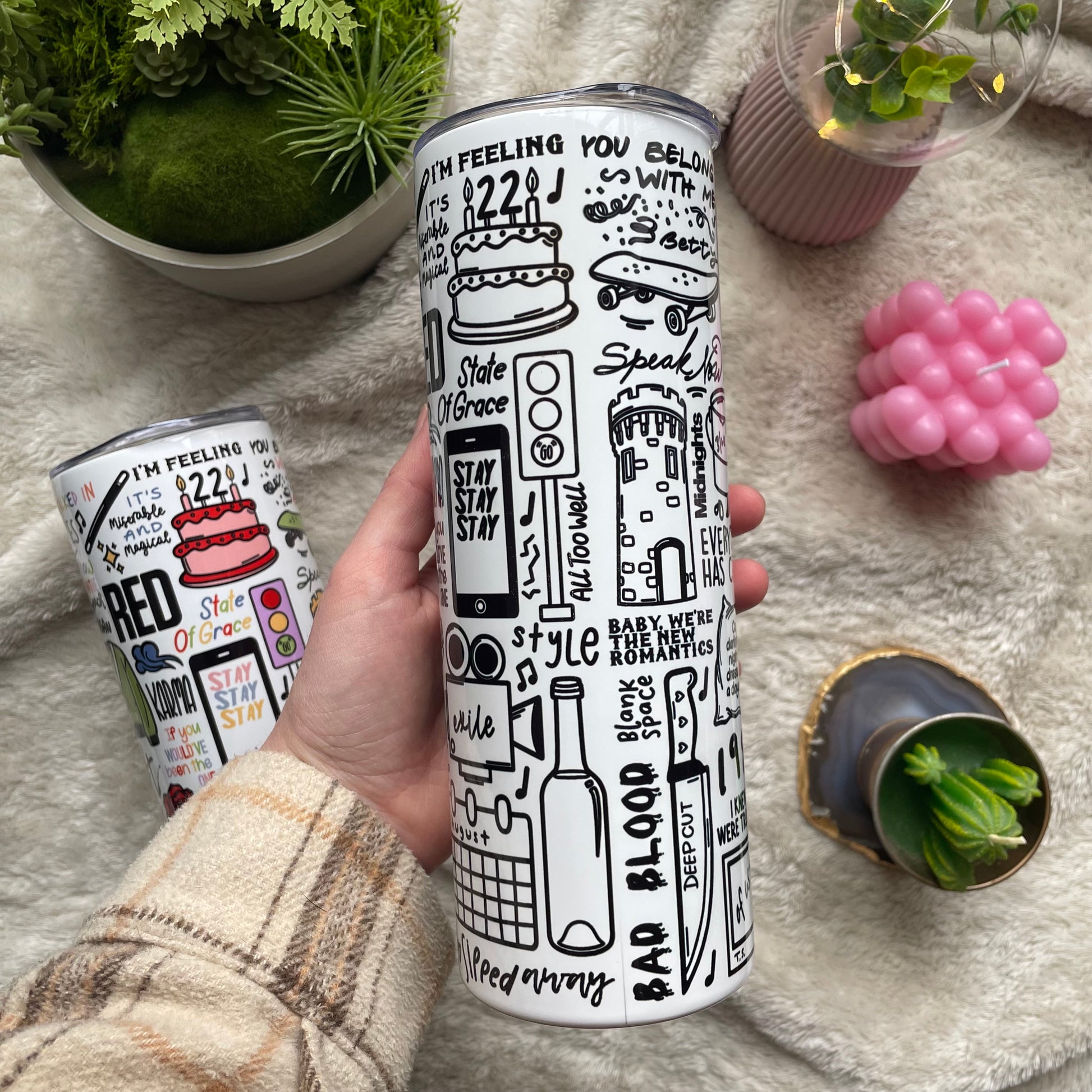 🥤Get lyrical with your beverages with our Taylor Swift travel drinks cup! This versatile cup keeps your drinks hot OR cold and your spirits high with fun lyrics and drawings printed all around the cup. Stay hydrated (and entertained) on the go with our tumblers🥰