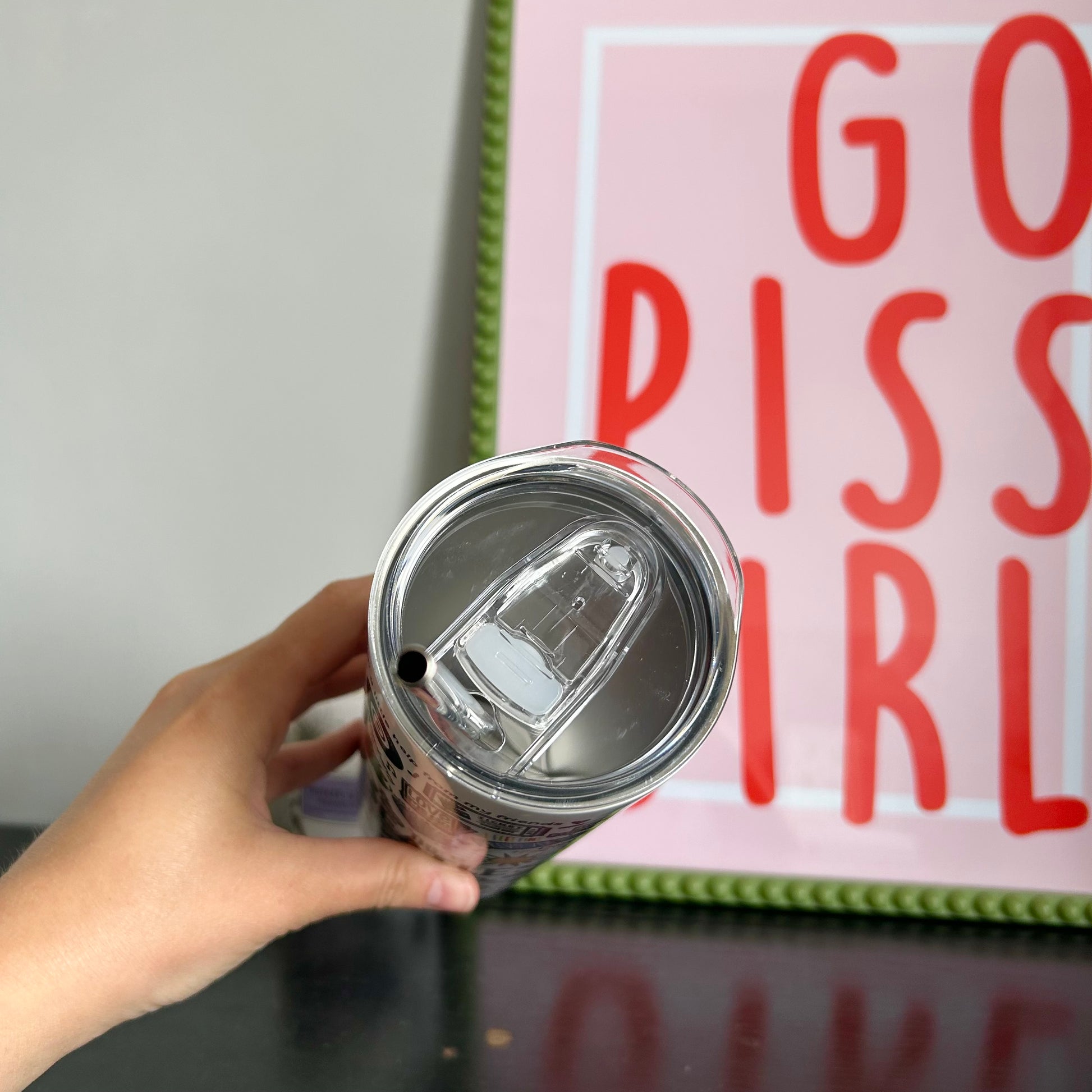 🥤Get lyrical with your beverages with our travel drinks cup! This versatile cup keeps your drinks hot OR cold and your spirits high with fun lyrics and drawings printed all around the cup. Stay hydrated (and entertained) on the go with our tumblers🥰