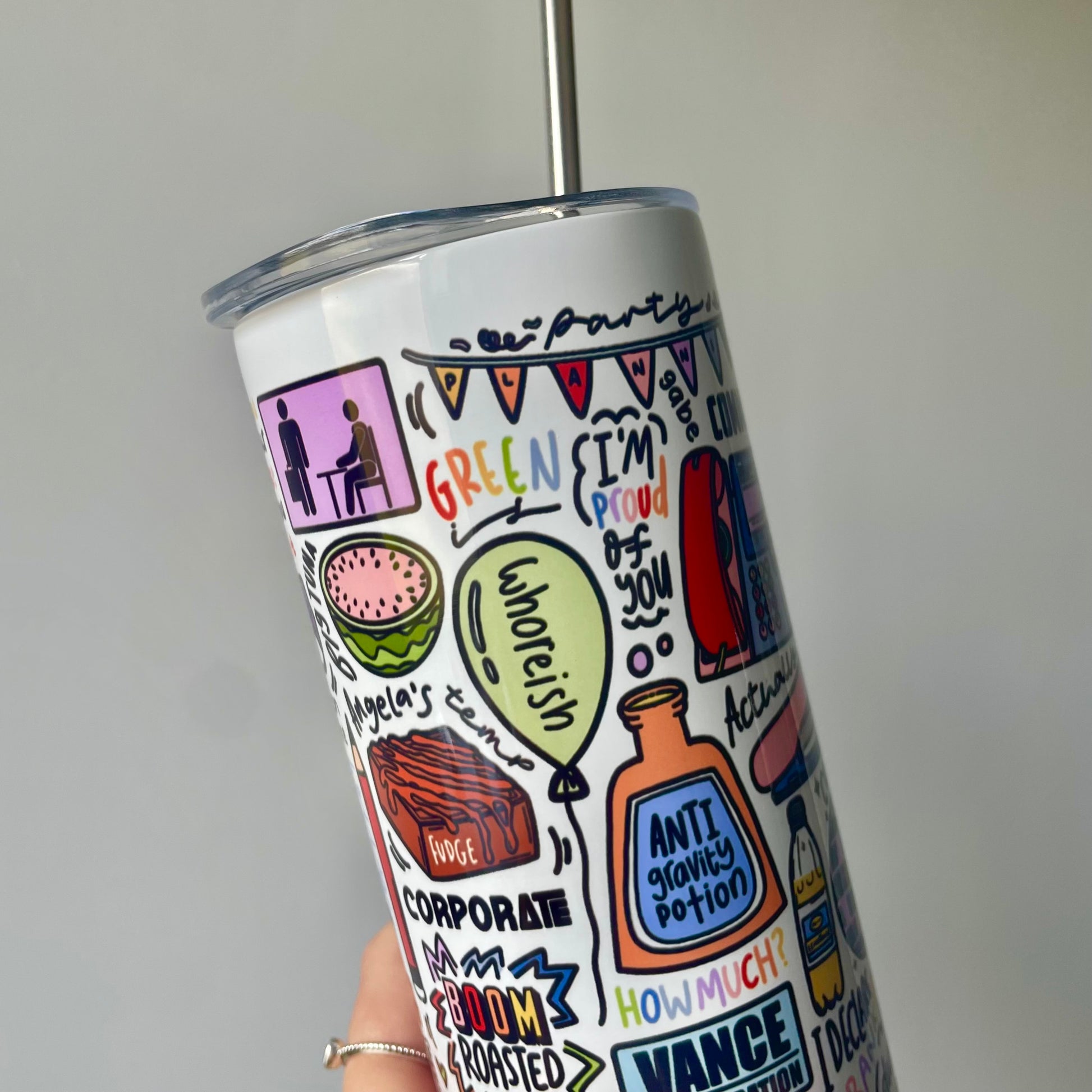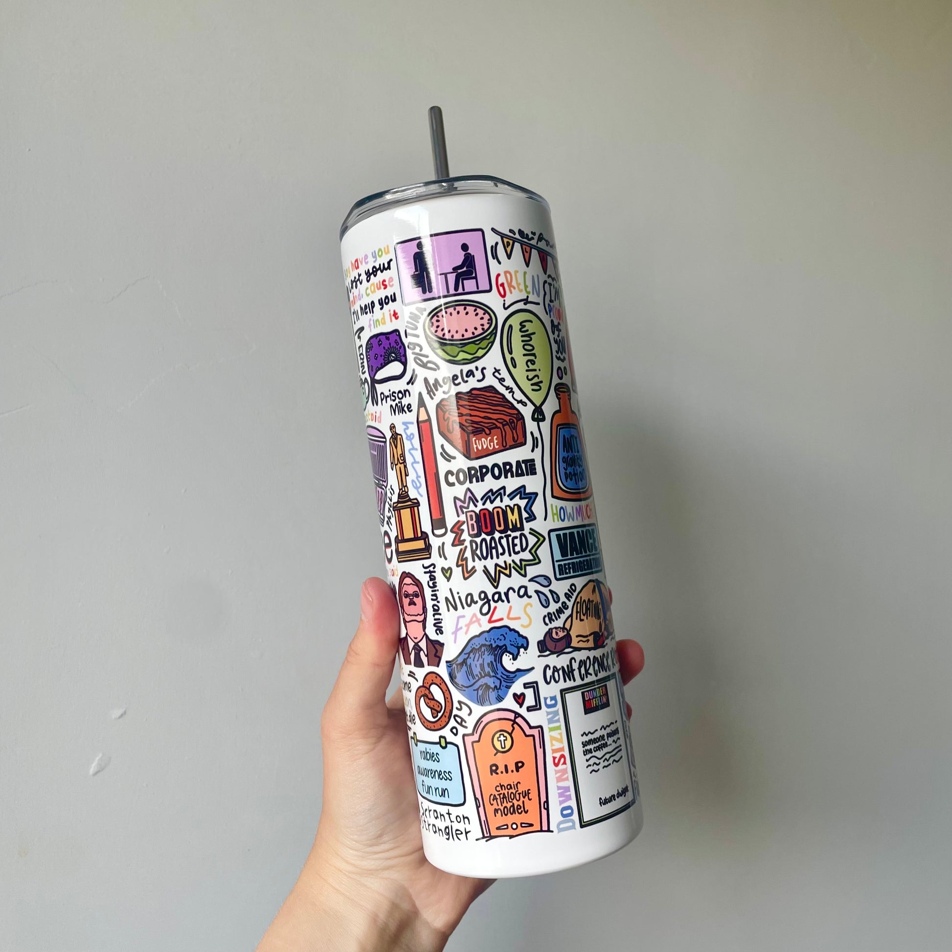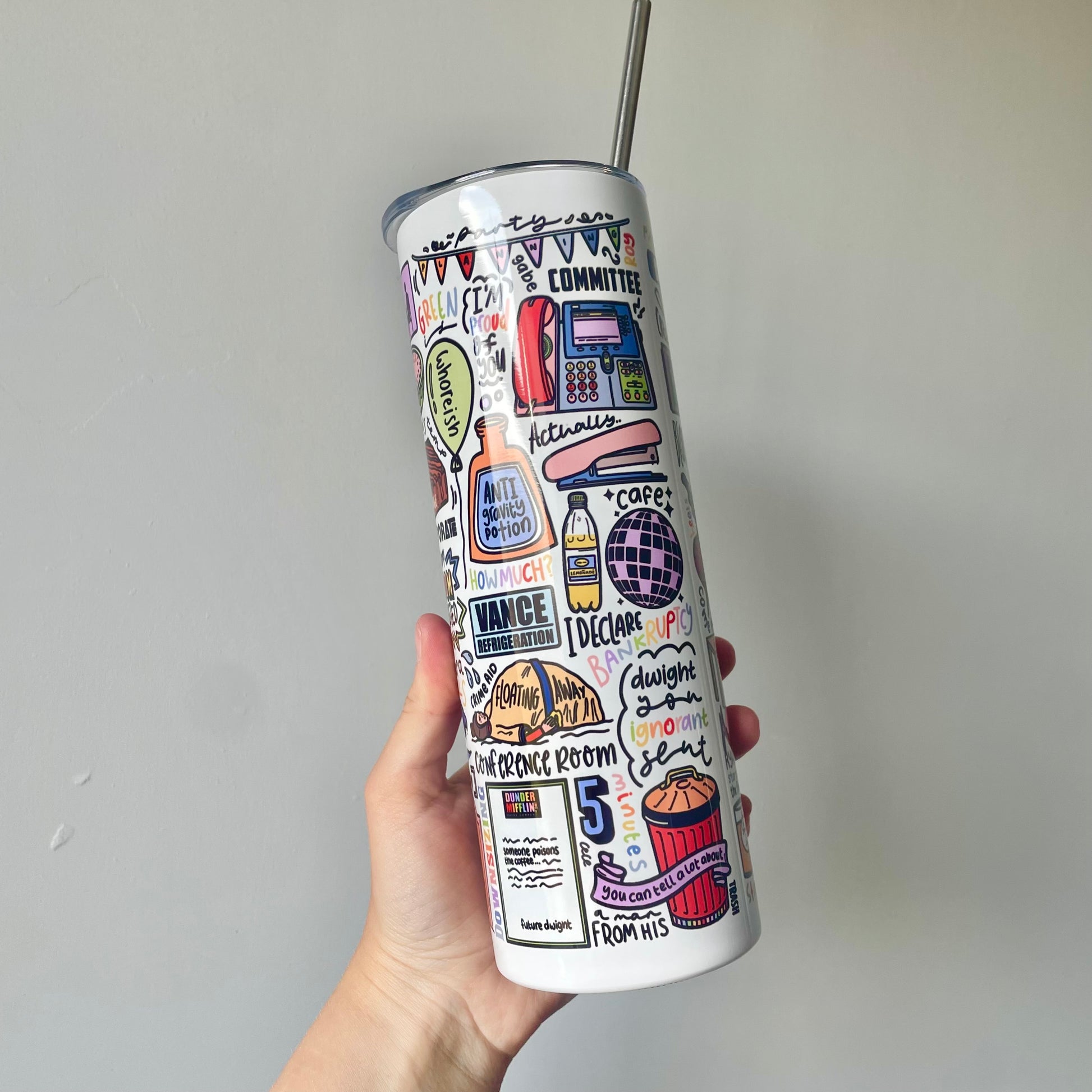 🥤Get lyrical with your beverages with our travel drinks cup! This versatile cup keeps your drinks hot OR cold and your spirits high with fun lyrics and drawings printed all around the cup. Stay hydrated (and entertained) on the go with our tumblers🥰