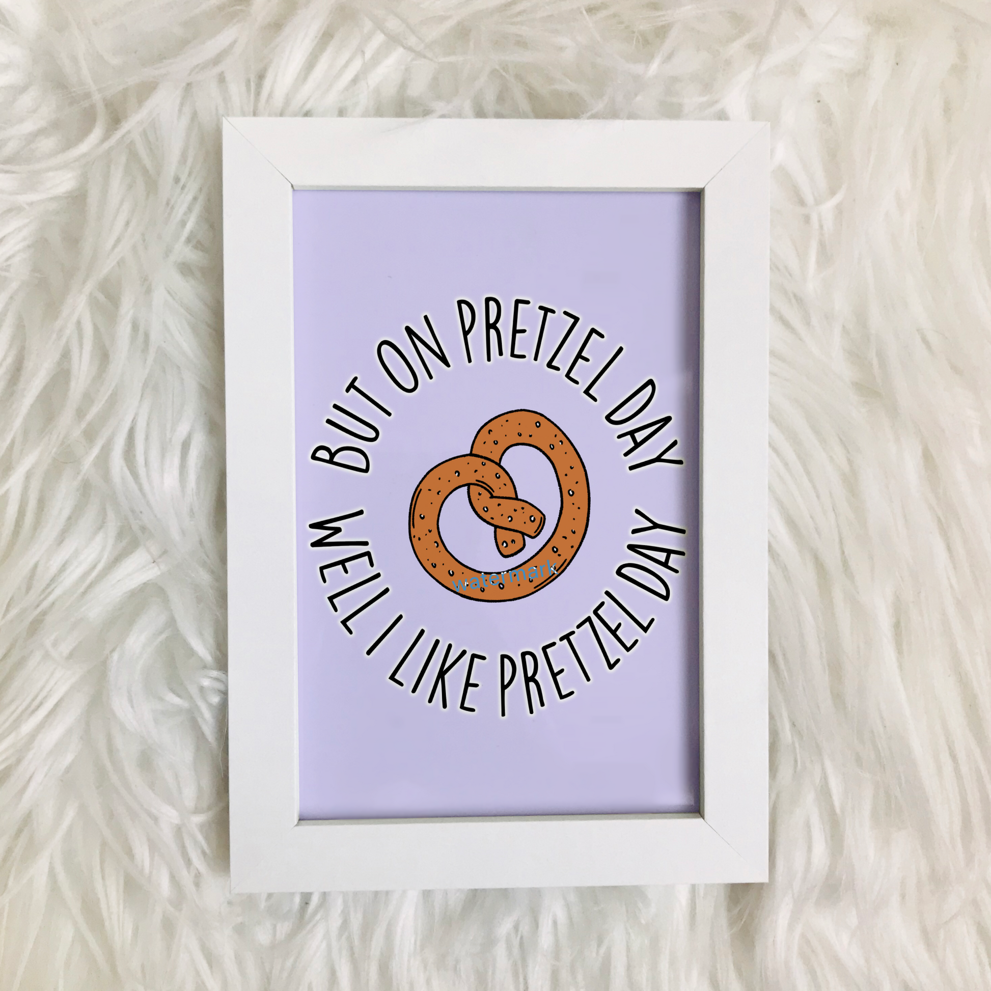 🥨La cita de Office de Stanley '...Pero el día del pretzel, nos gustará el día del pretzel' sobre un fondo morado.