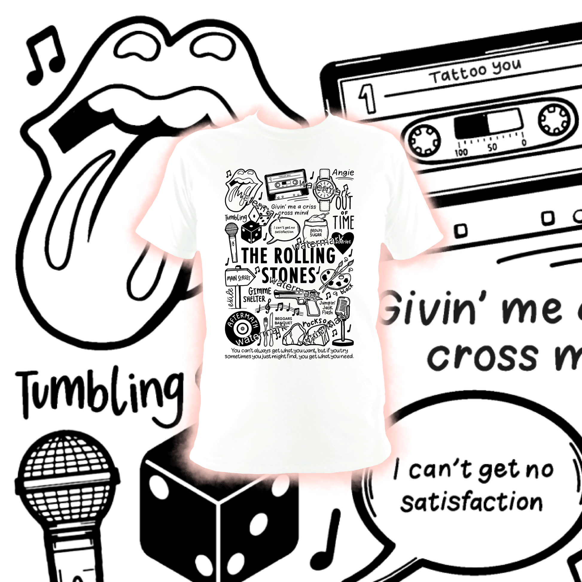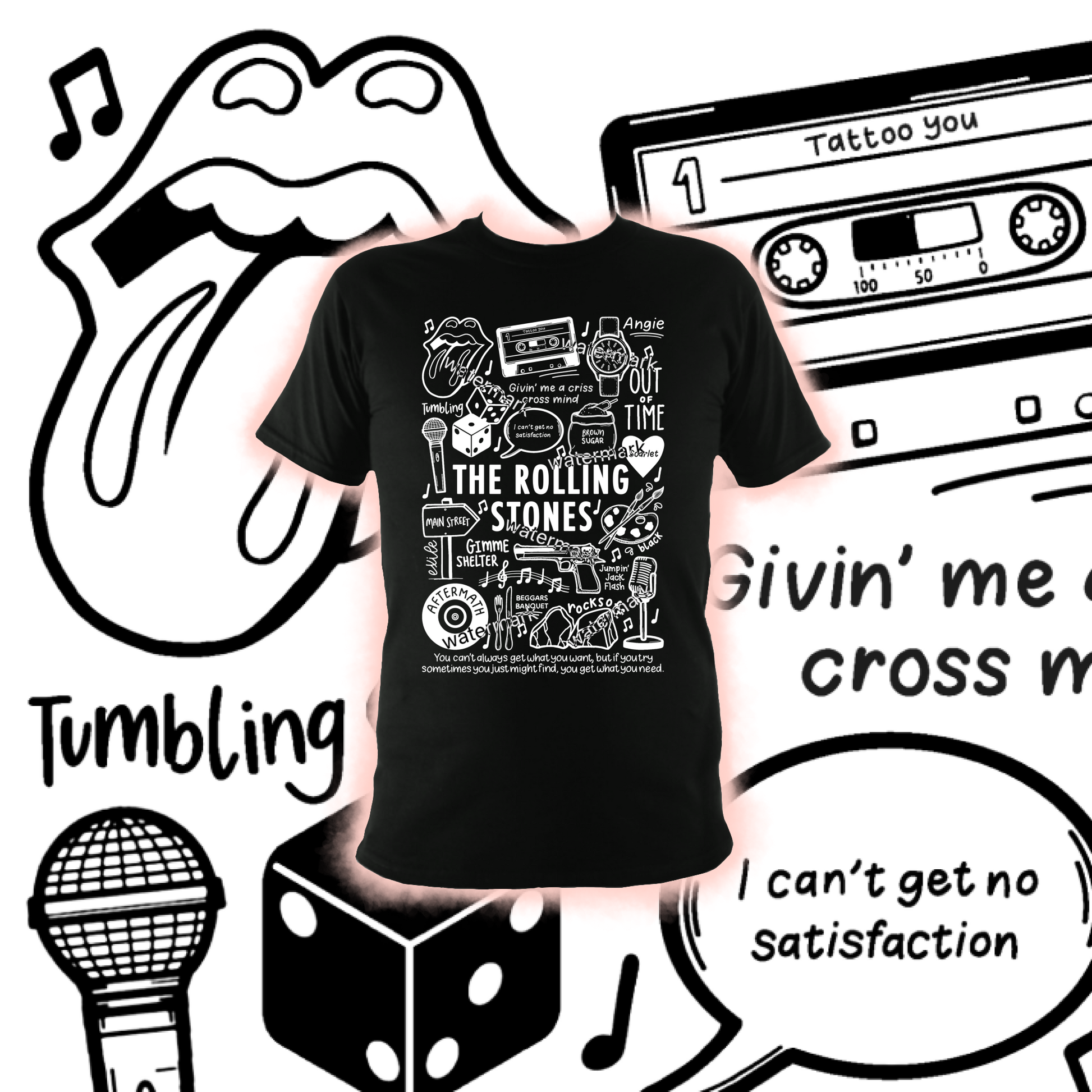 🎶 Camiseta unisex de algodón impresa profesionalmente de The Rolling Stones en blanco o negro.