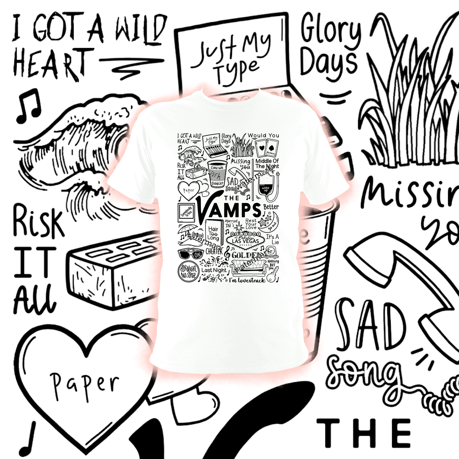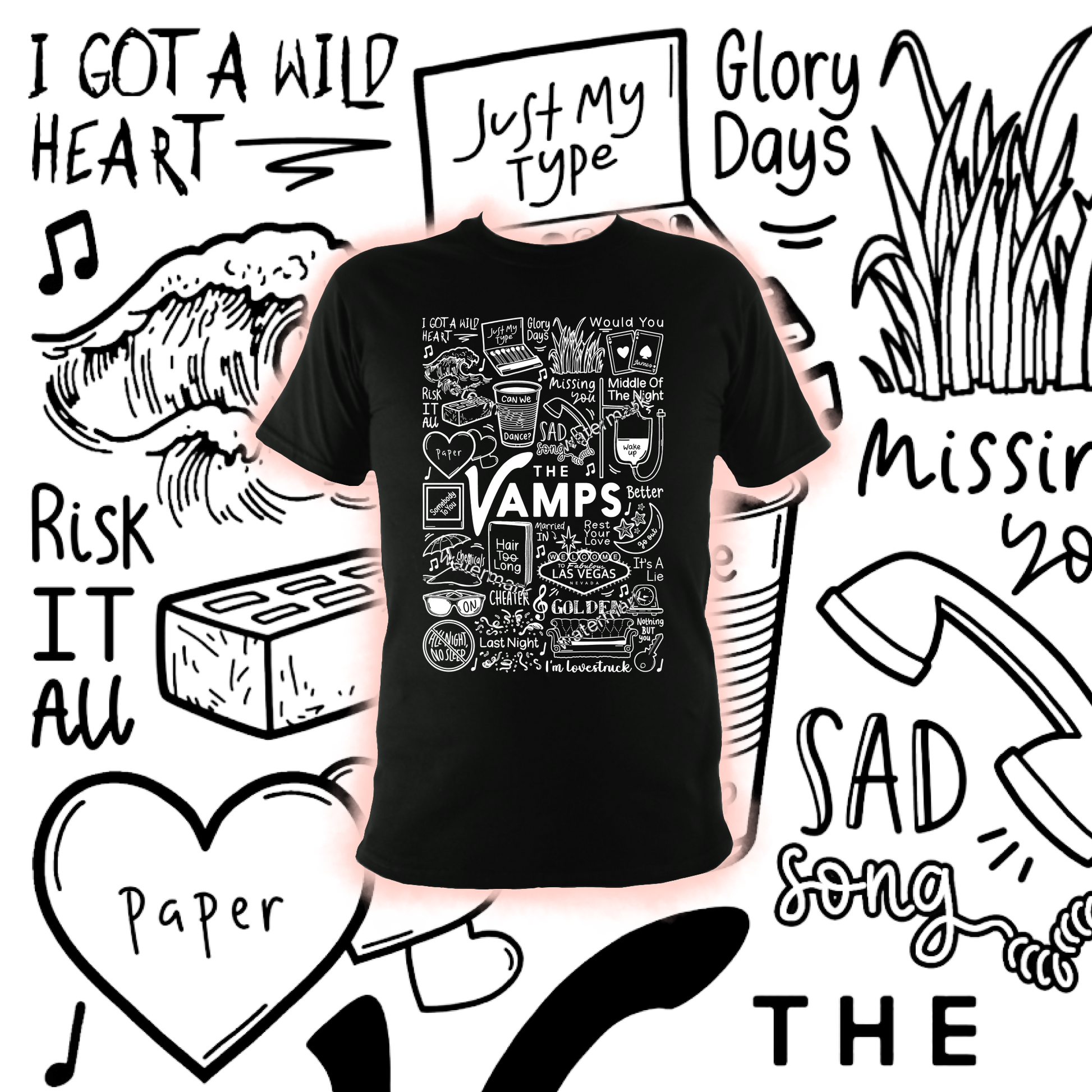 🎶 Algodón unisex estampado profesionalmente The Vamps camiseta en blanco o negro.