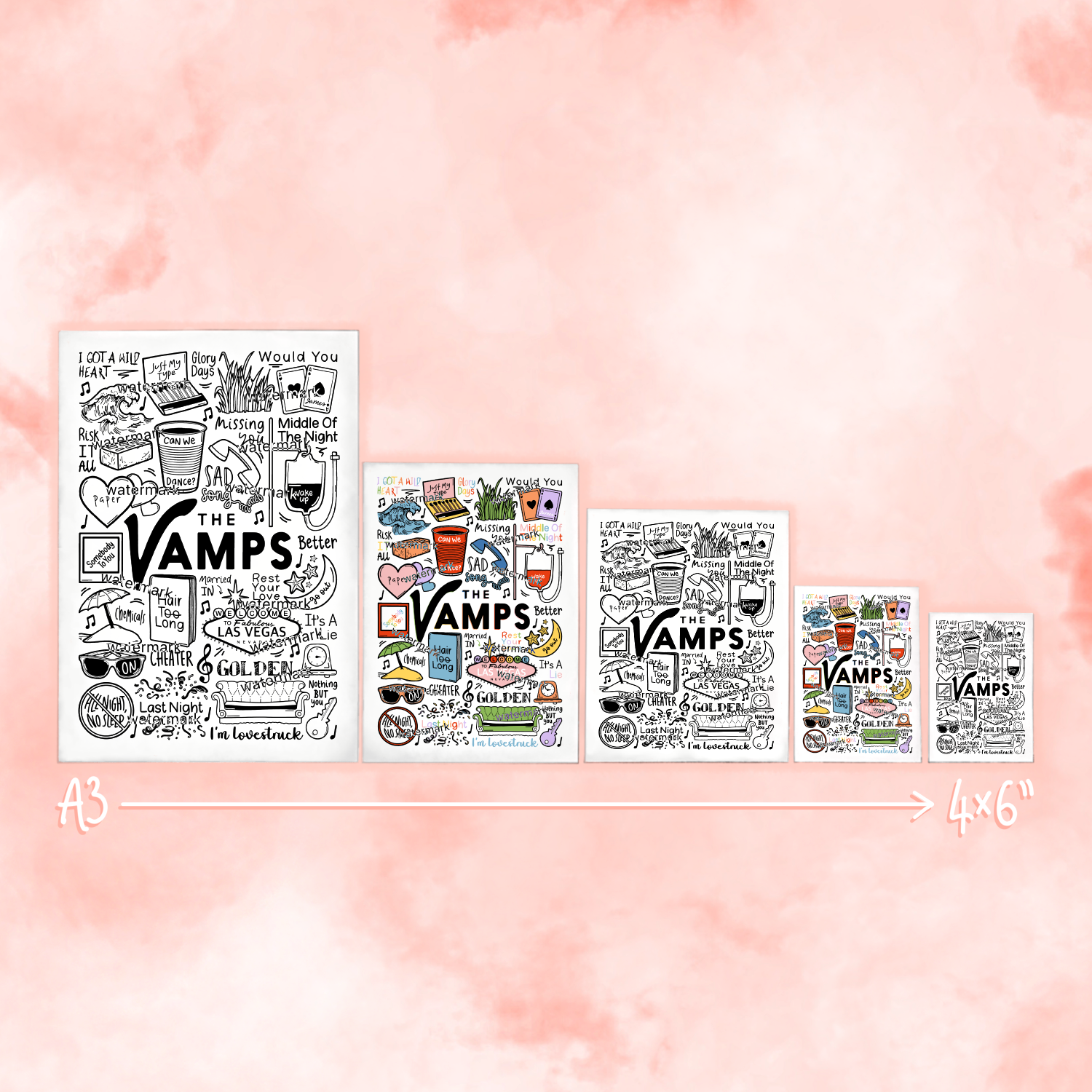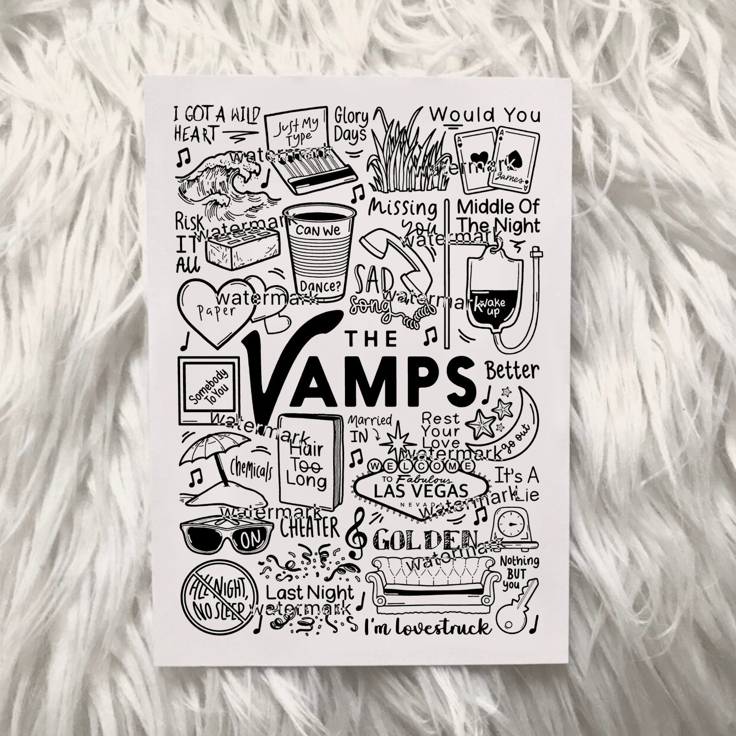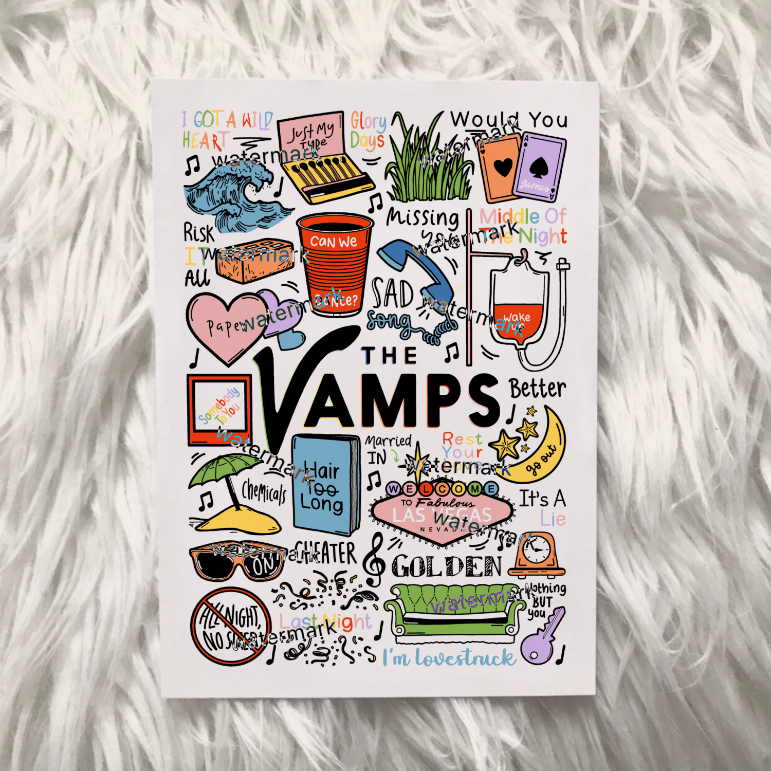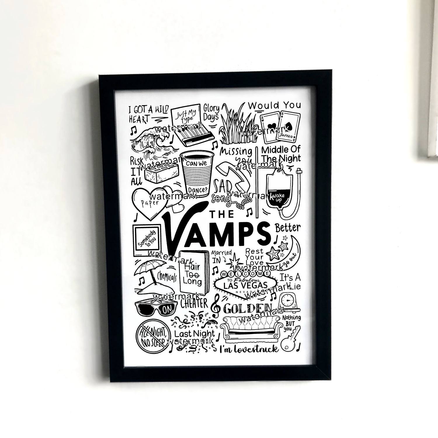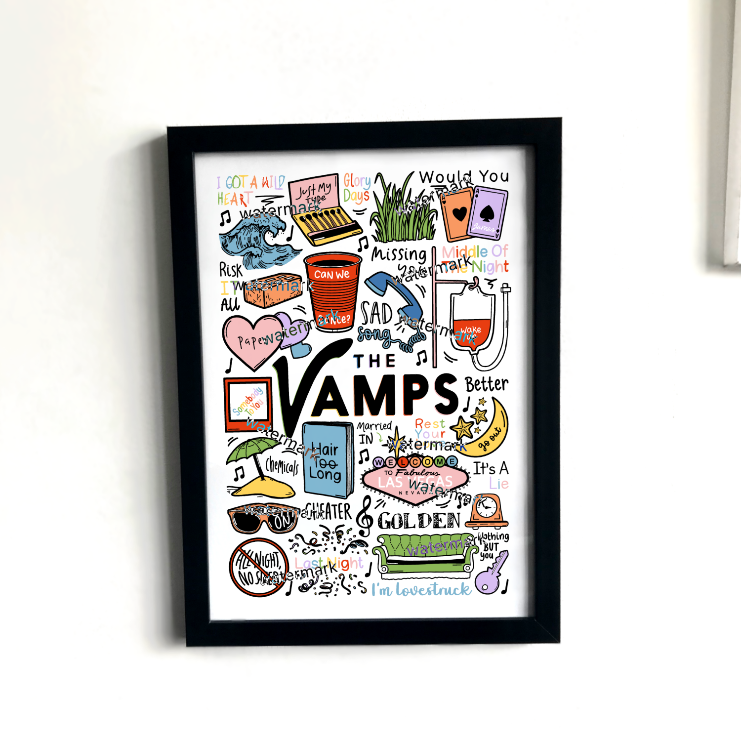 🎶 Póster de The Vamps con imágenes y letras de canciones de sus álbumes.