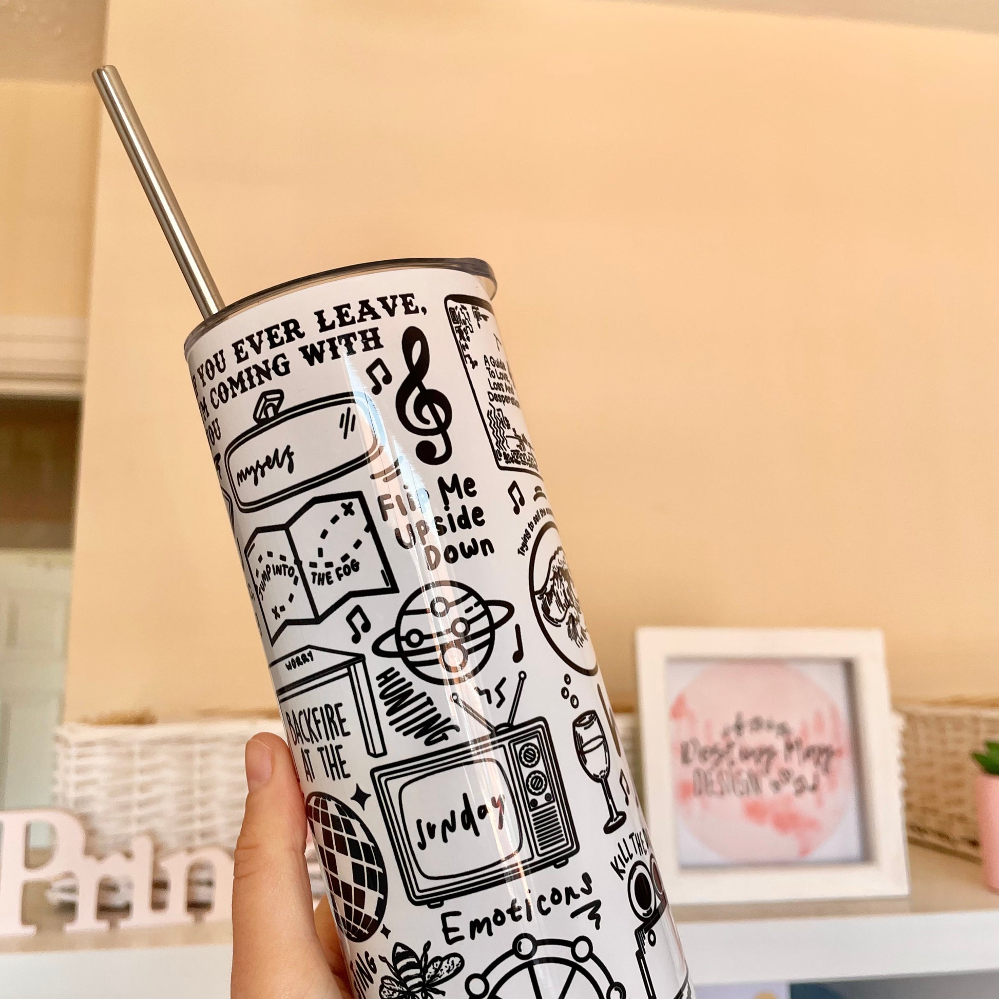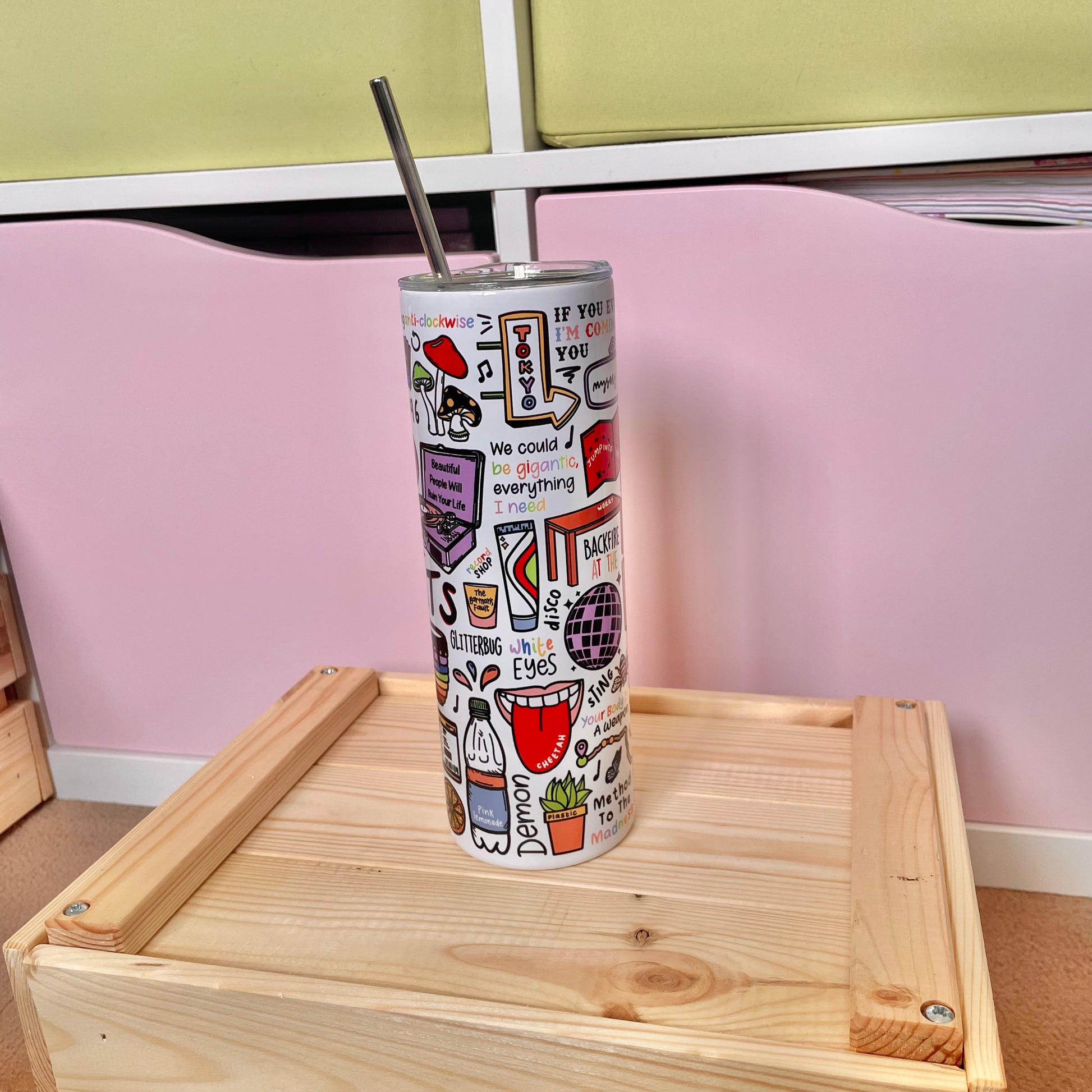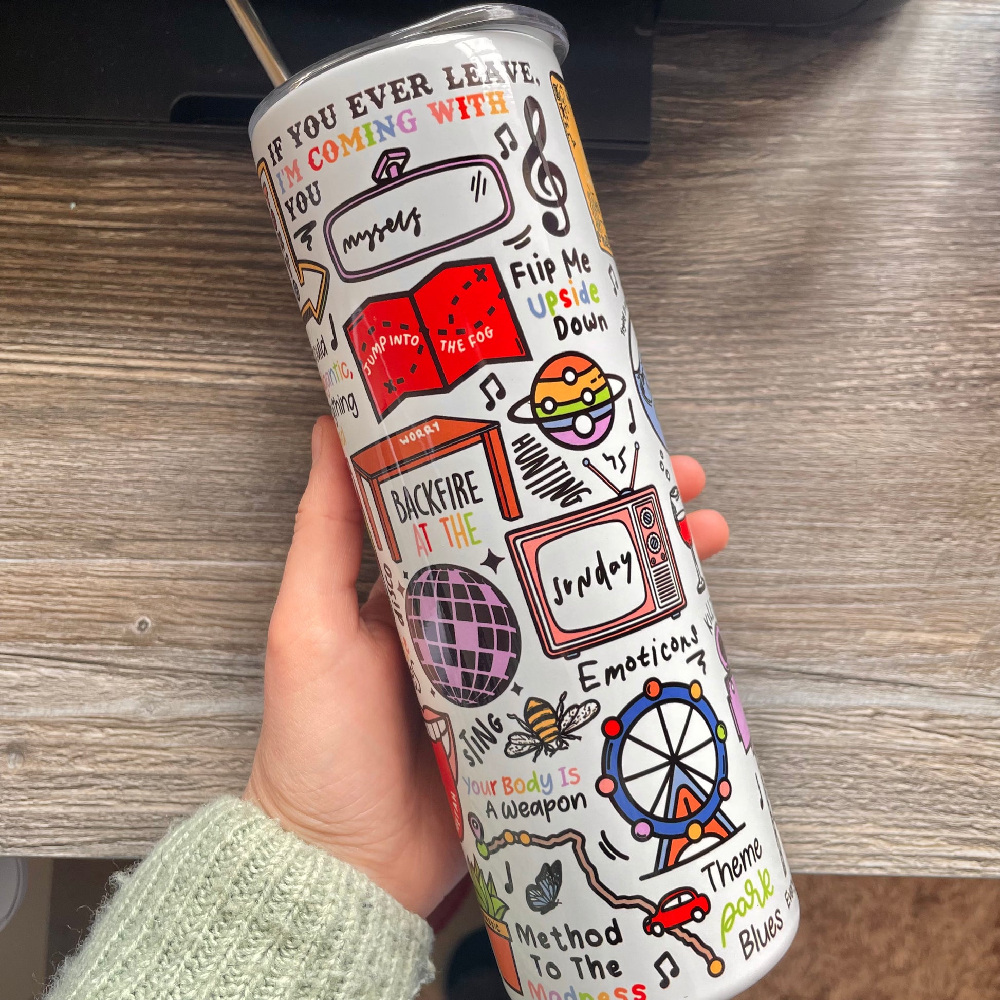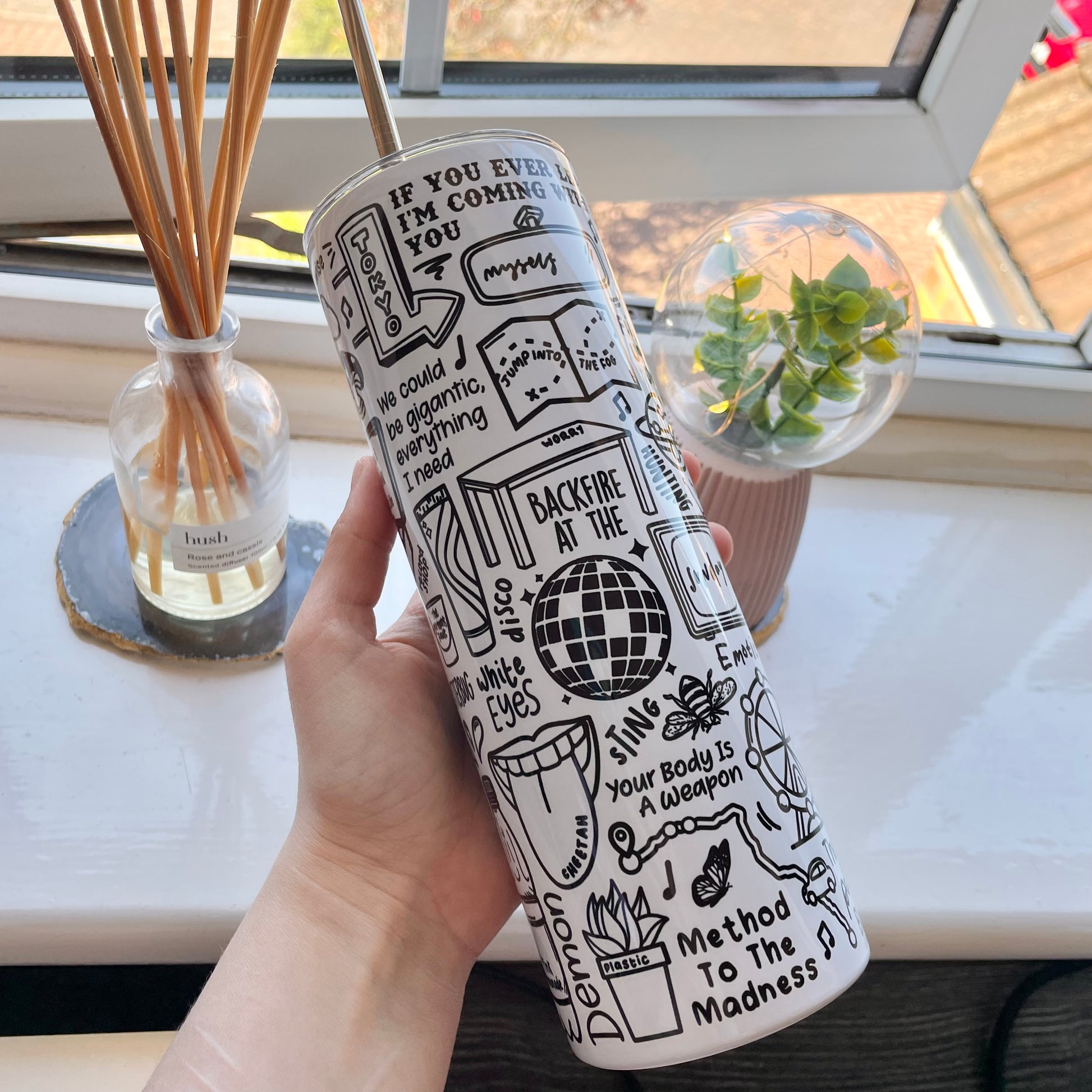 🥤Get lyrical with your beverages with our The Wombats travel drinks cup! This versatile cup keeps your drinks hot OR cold and your spirits high with fun lyrics and drawings printed all around the cup. Stay hydrated (and entertained) on the go with our tumblers🥰