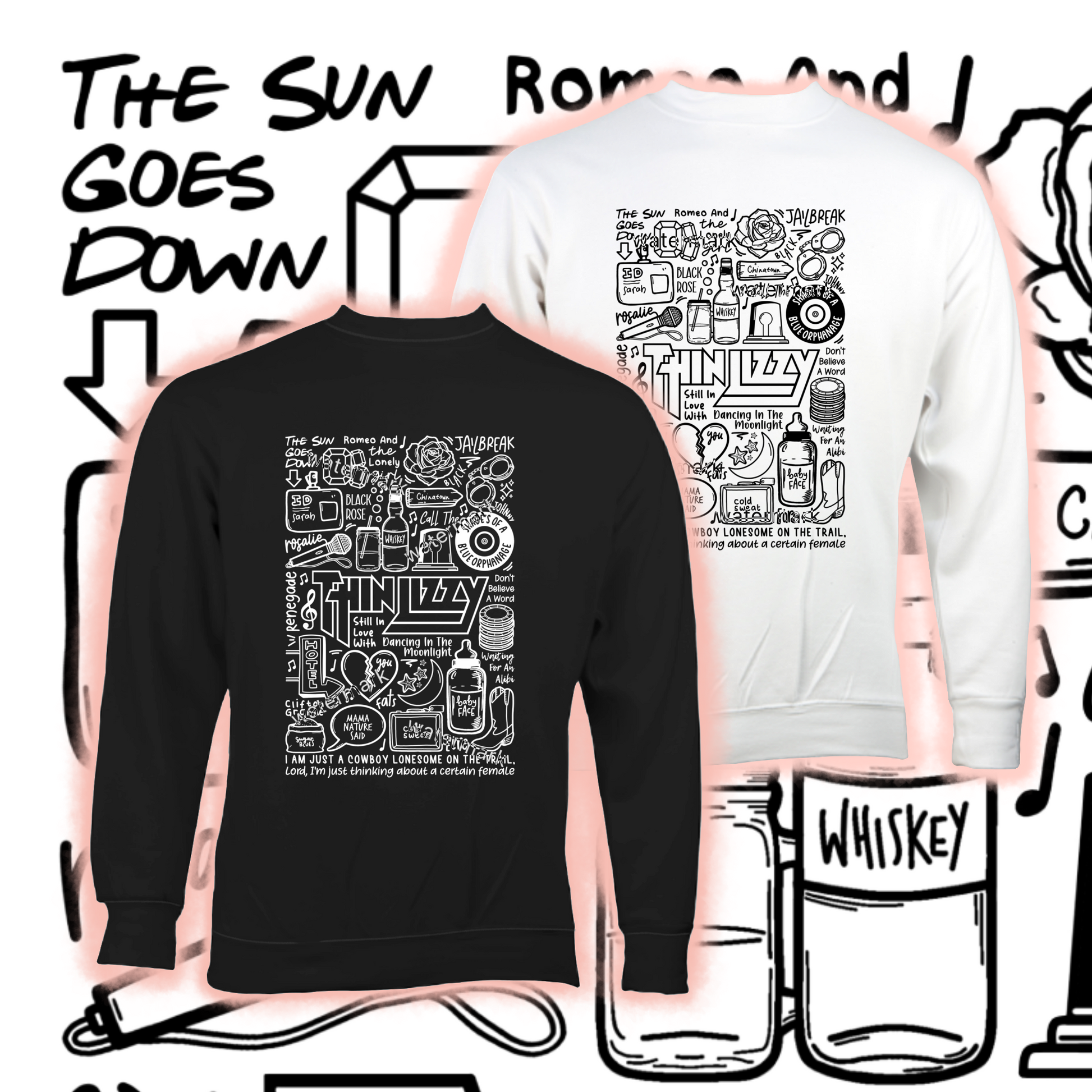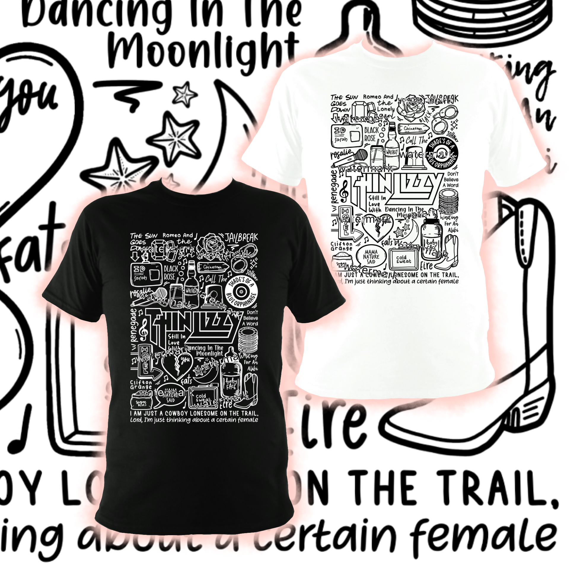 🎶Professionally printed cotton unisex Thin Lizzy top in black or white.