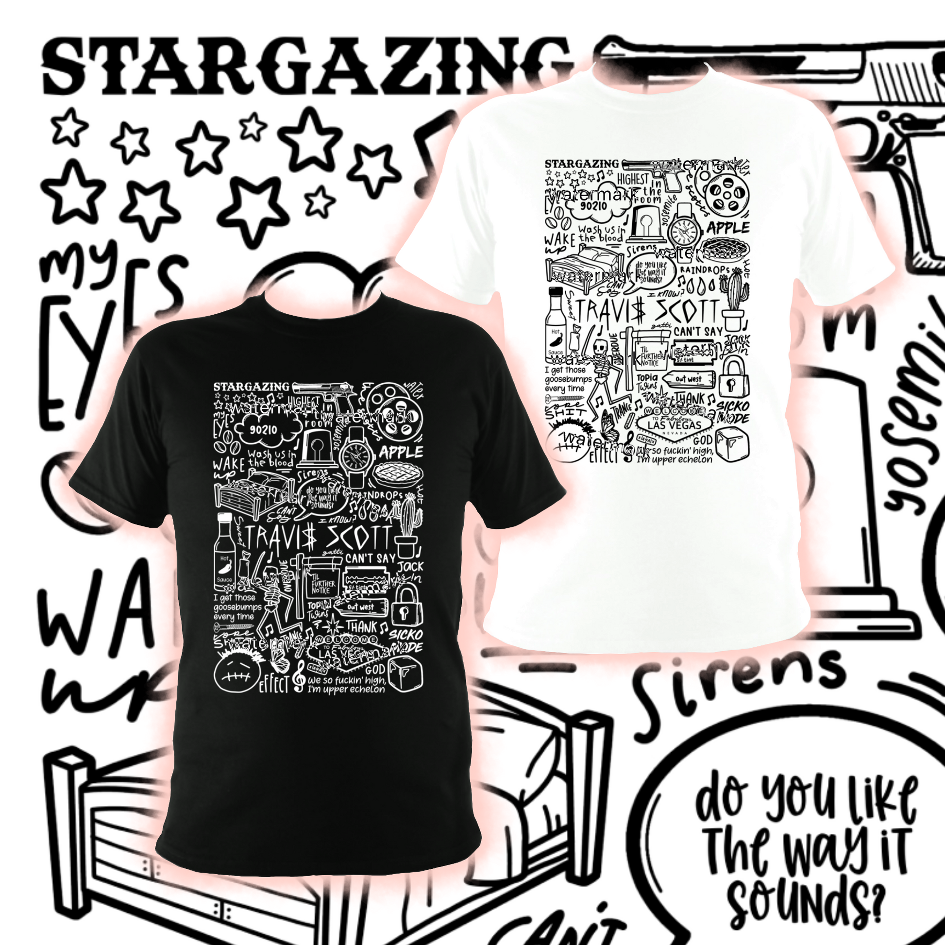 🎶Travis Scott wall art including images, lyrics, and song titles from their albums.