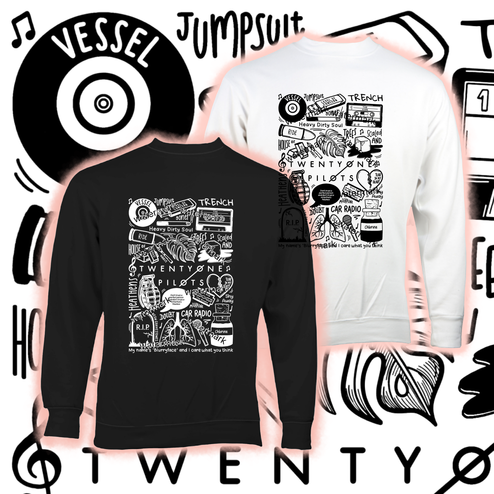 🎶 Camiseta unisex 21 Pilots de algodón impresa profesionalmente en blanco o negro.